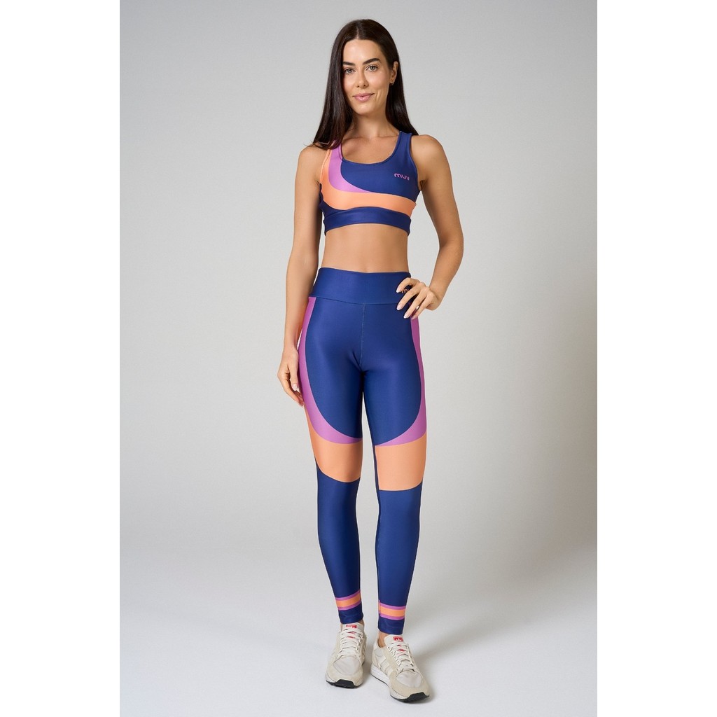 Conjunto Fitness Feminino Calça Legging e Top Nadador Ássana Azul Marinho Academia Treino Corrida Cintura Alta