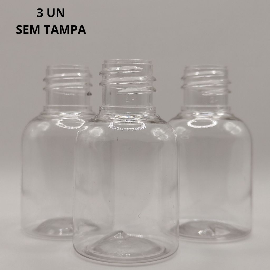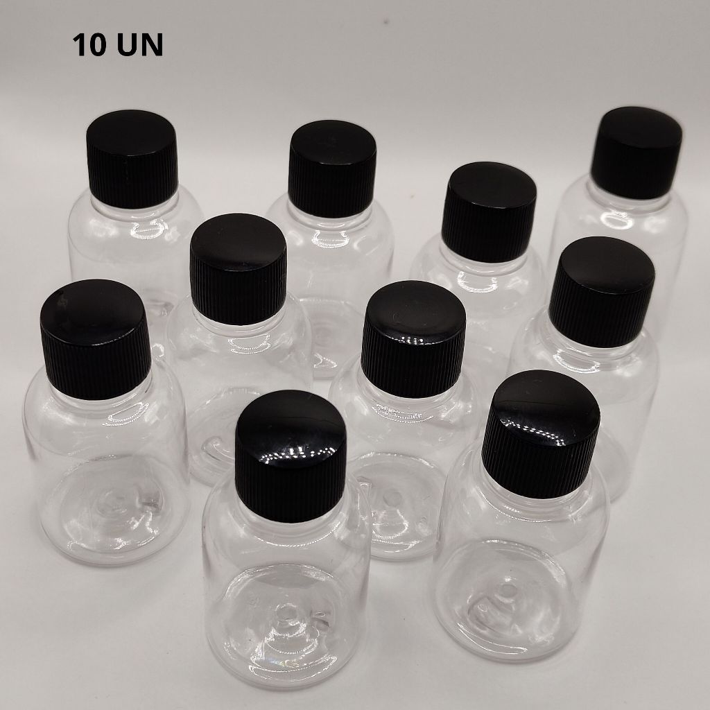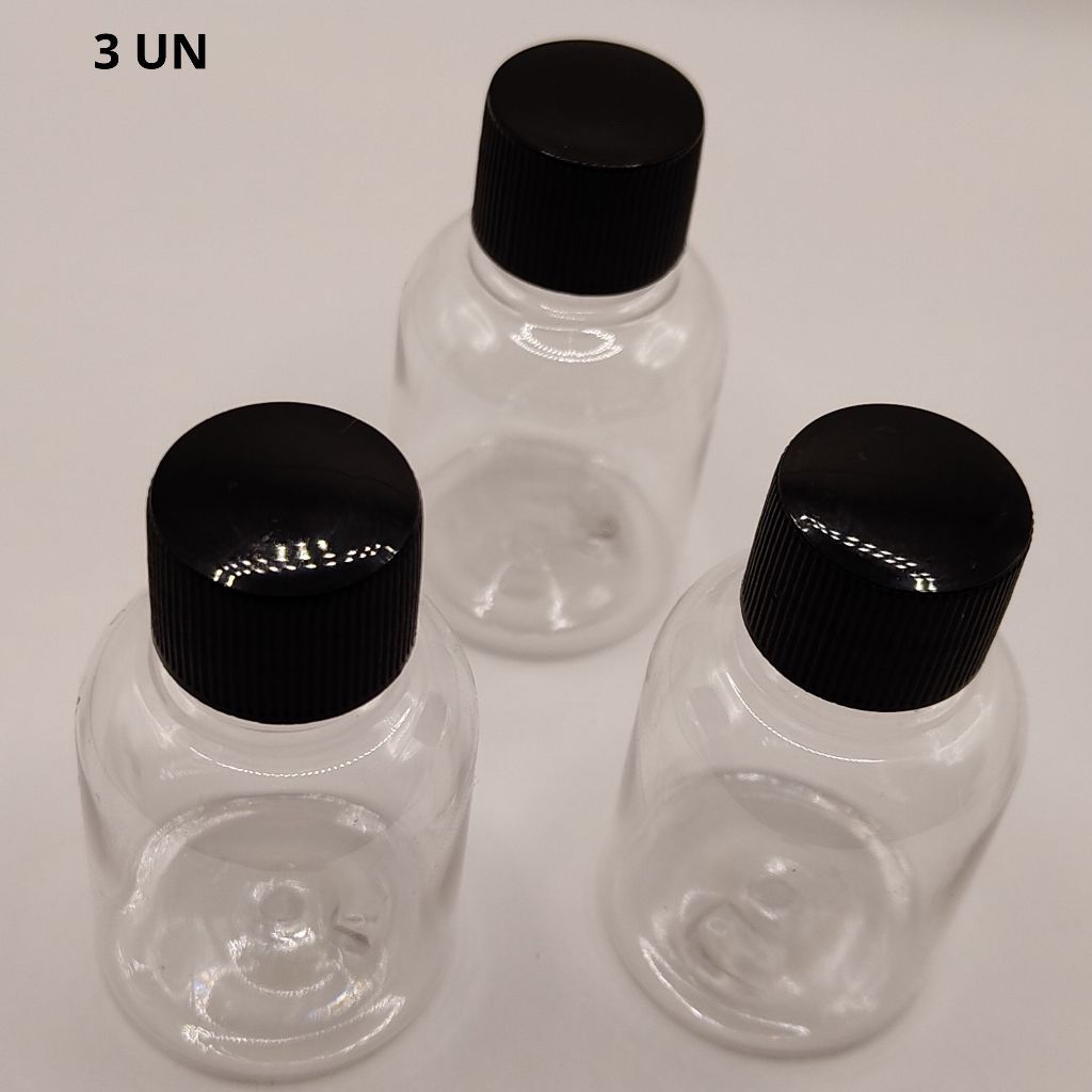 Frasco PET 30 mL com ou sem Tampa Preta - Transporta cosméticos, líquidos (pct com 1/3/10 un)