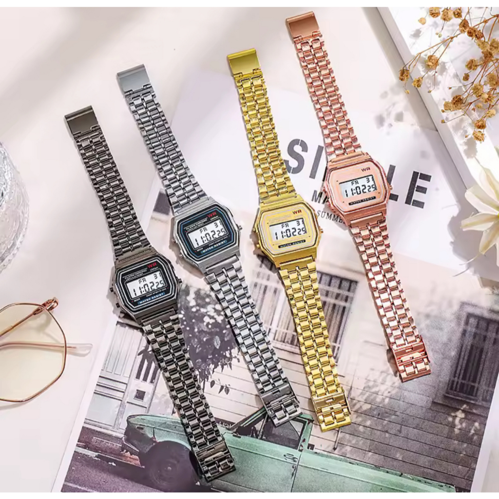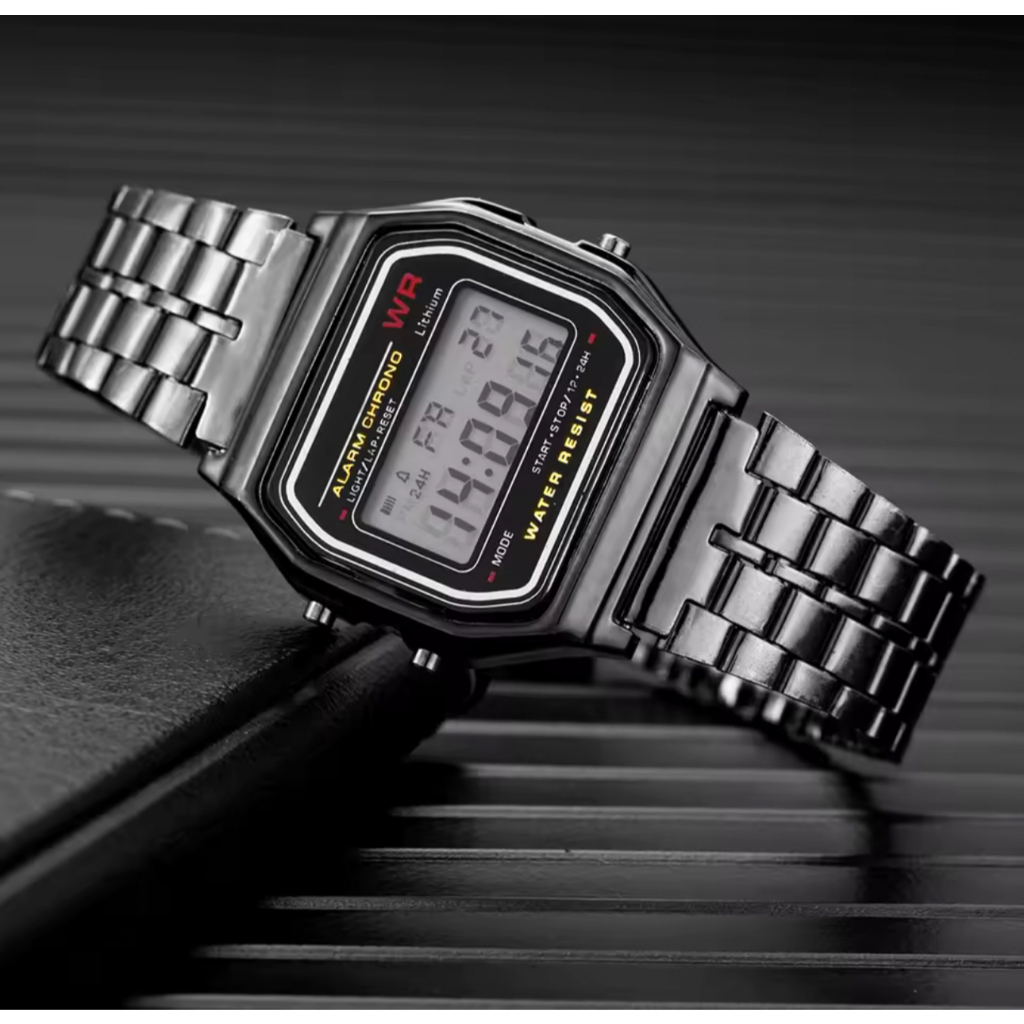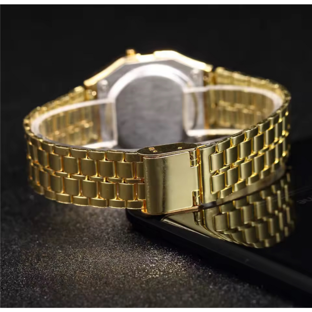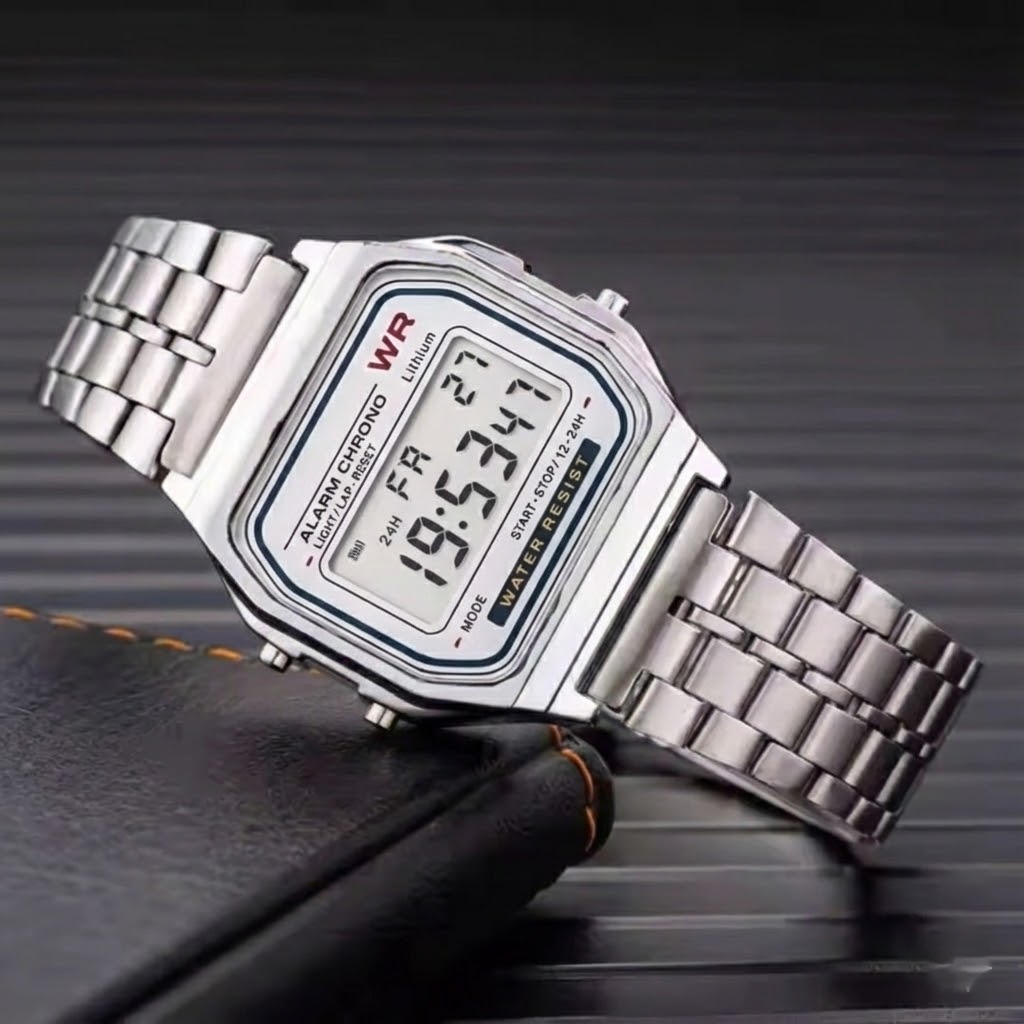 Relógio Digital LED Prata Unissex Masculino Feminino Retrô Quadrado Fashion Pulseira Aço Inox