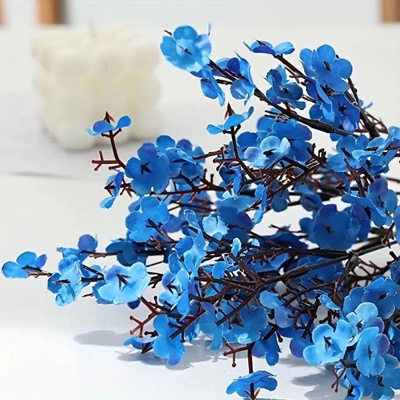 Ramo de Cerejeira Azul Flores Artificial Floral Folhagem P/ Decoração Festas - A-503