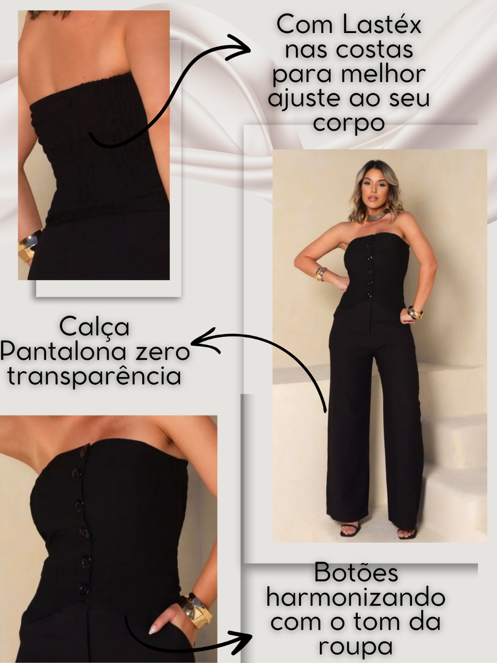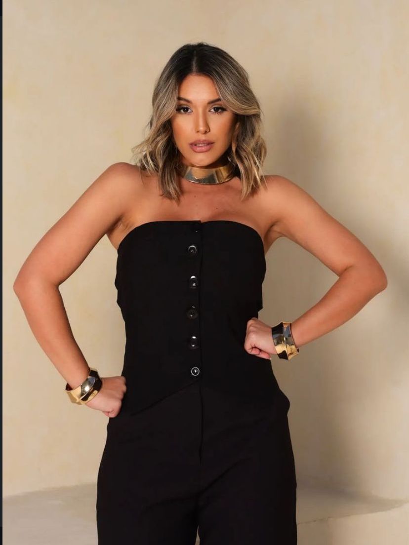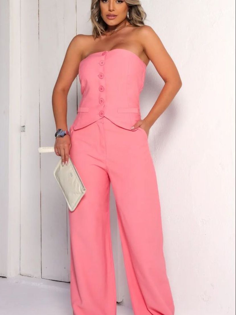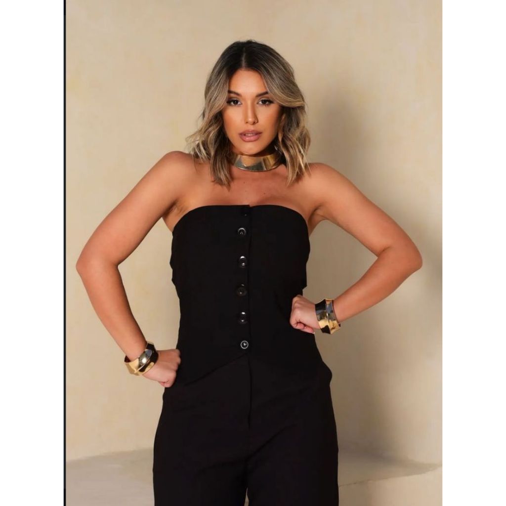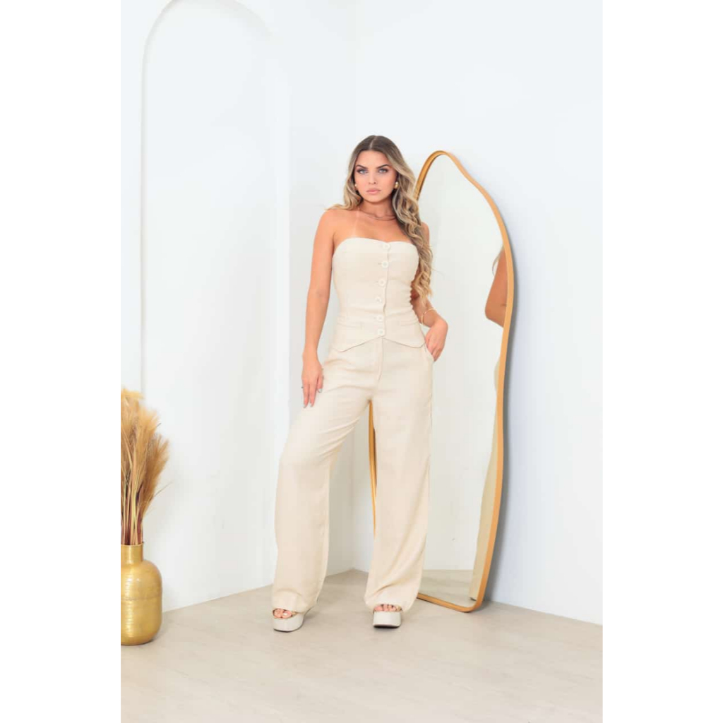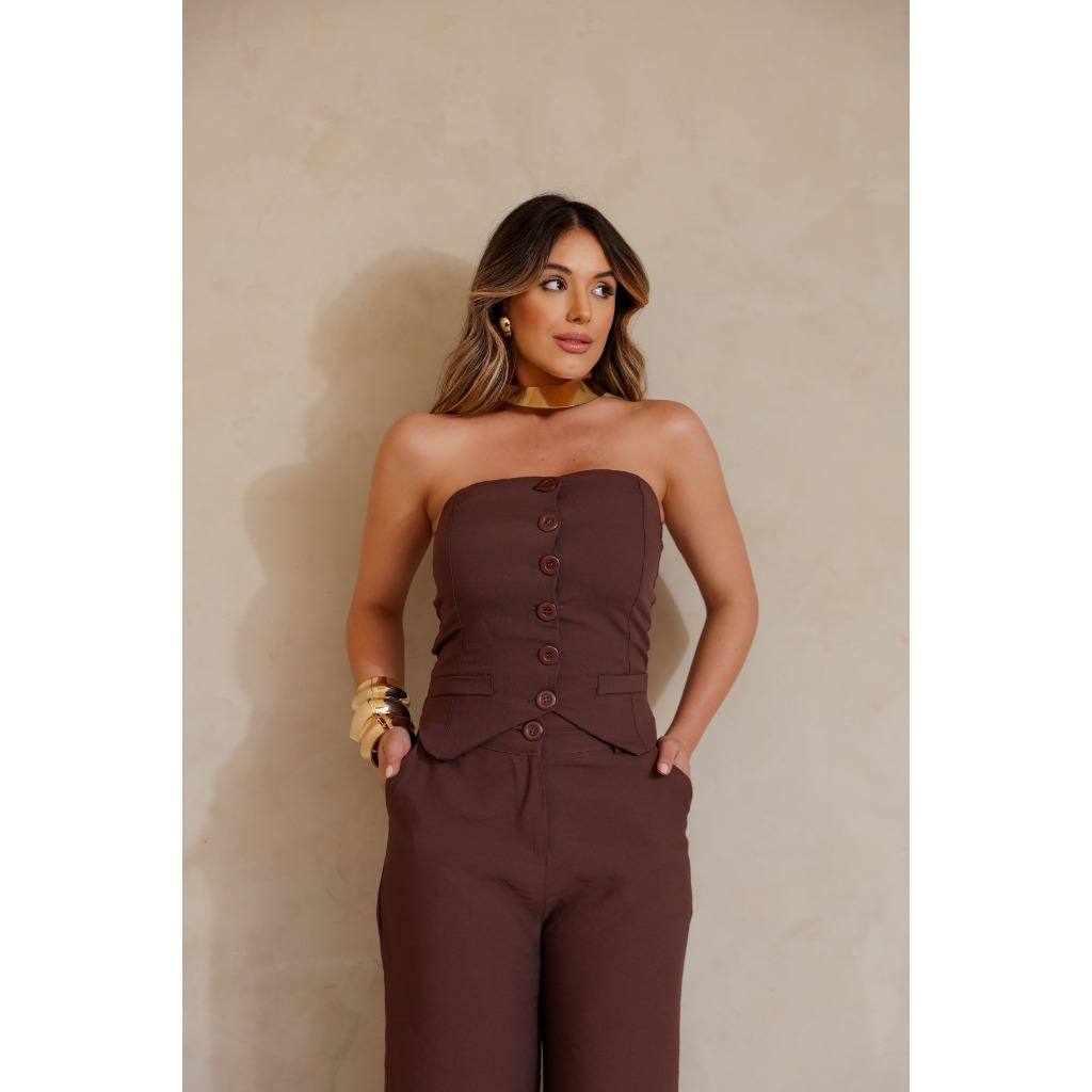 Conjunto Elegante Feminino Calça Pantalona Top Alfaiataria Tomara que Caia