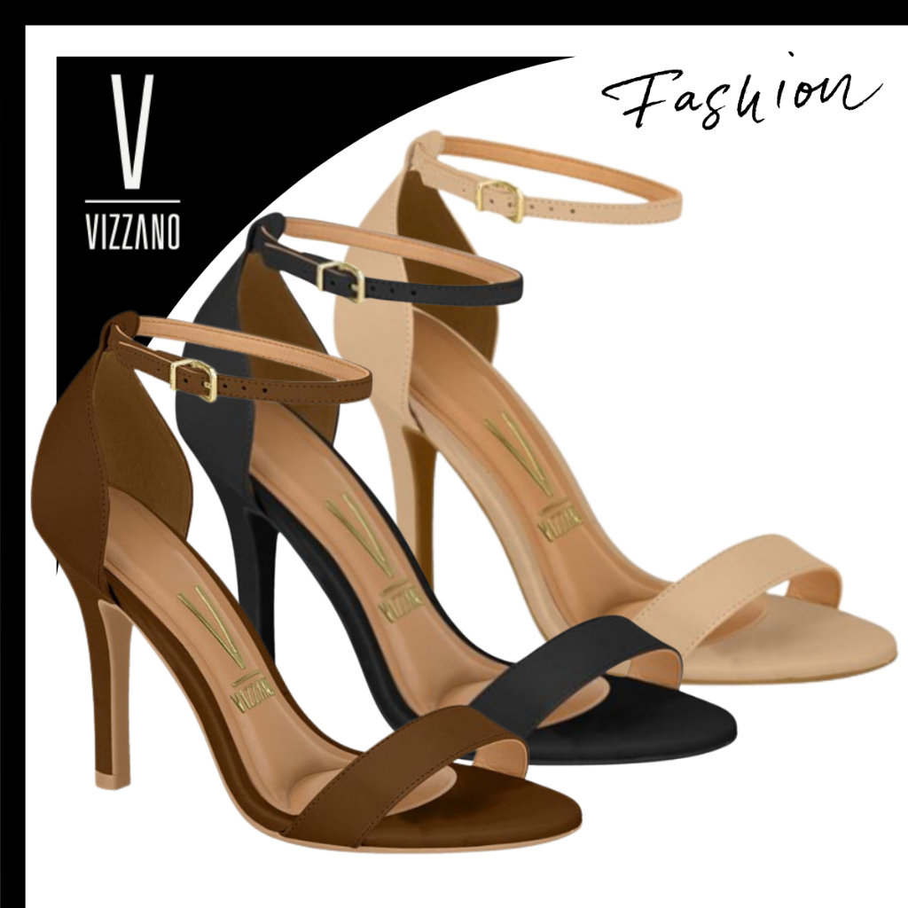 Sandália Vizzano Feminina Salto Fino Alto Estilo Gisele Confortável Fivela Tornozelo