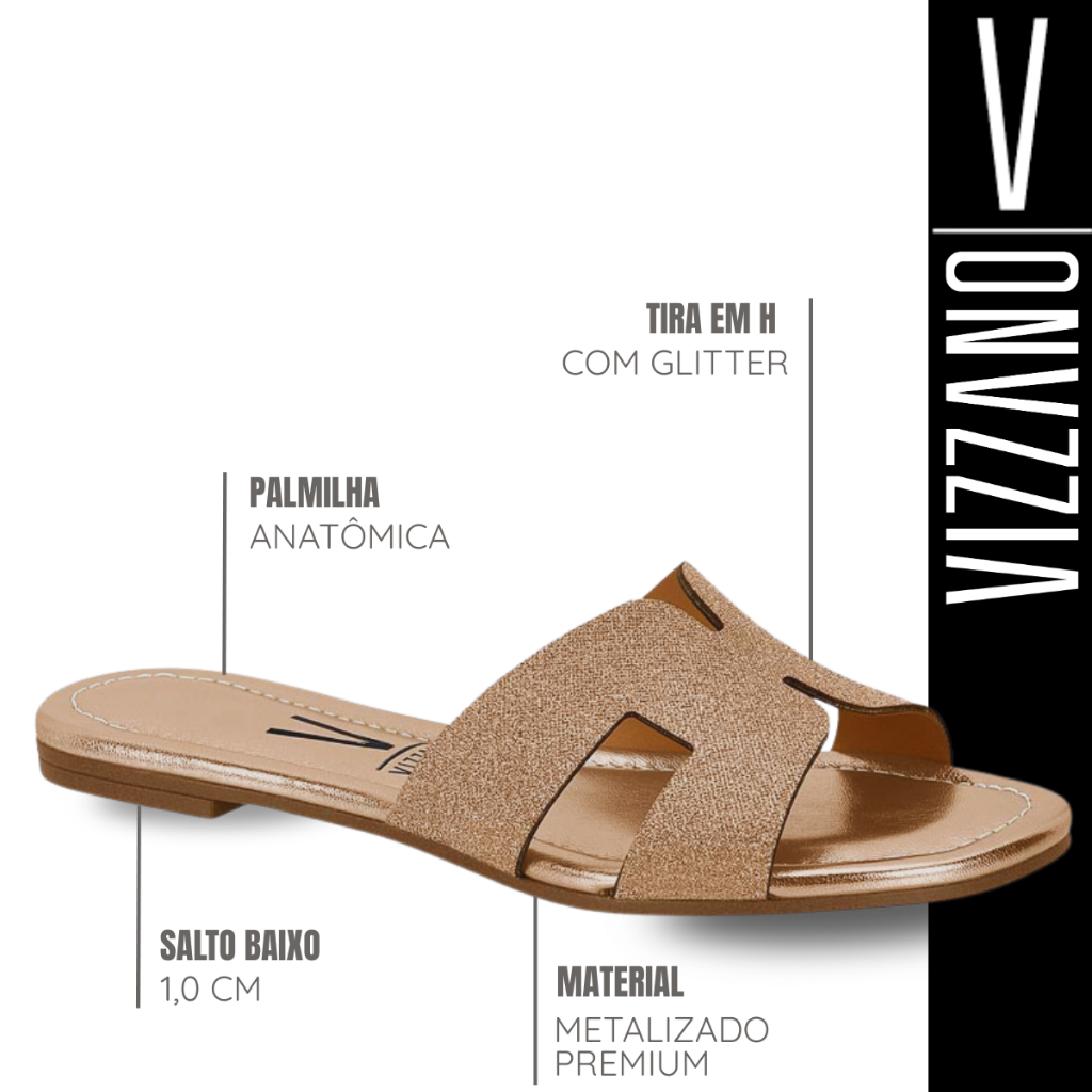 Sandália Rasteirinha Slide em H Vizzano Confortável Leve Acolchoada Antiderrapante Original
