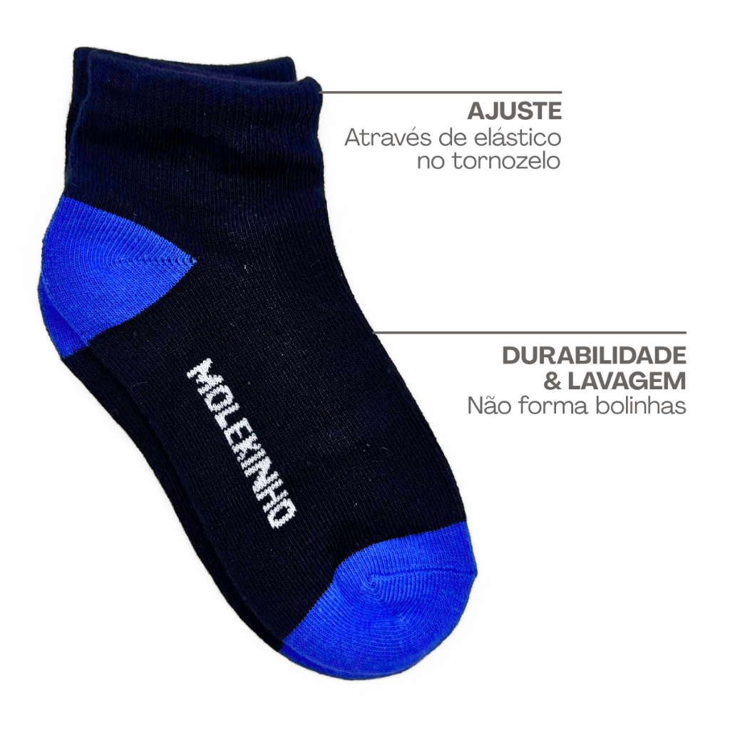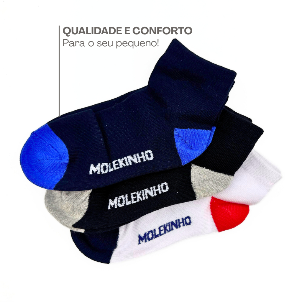 Kit Meia Infantil Menino Molekinho Cano Médio Básica Algodão Confortável 19 ao 33 Macia Dia a Dia