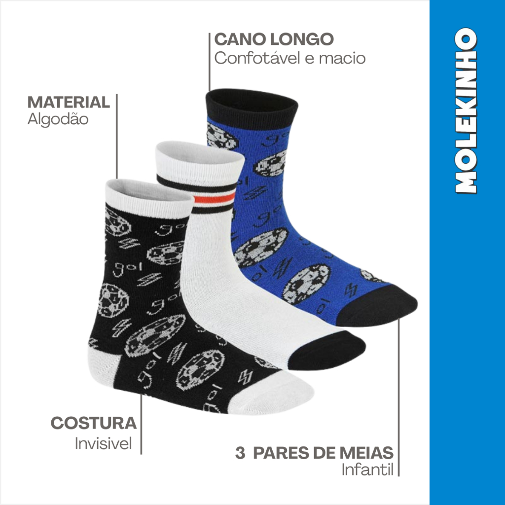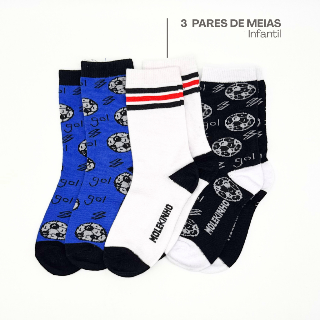Kit Meia Infantil Menino Molekinho Cano Longo Estampado Algodão Confortável 28 ao 33 Leve Macio