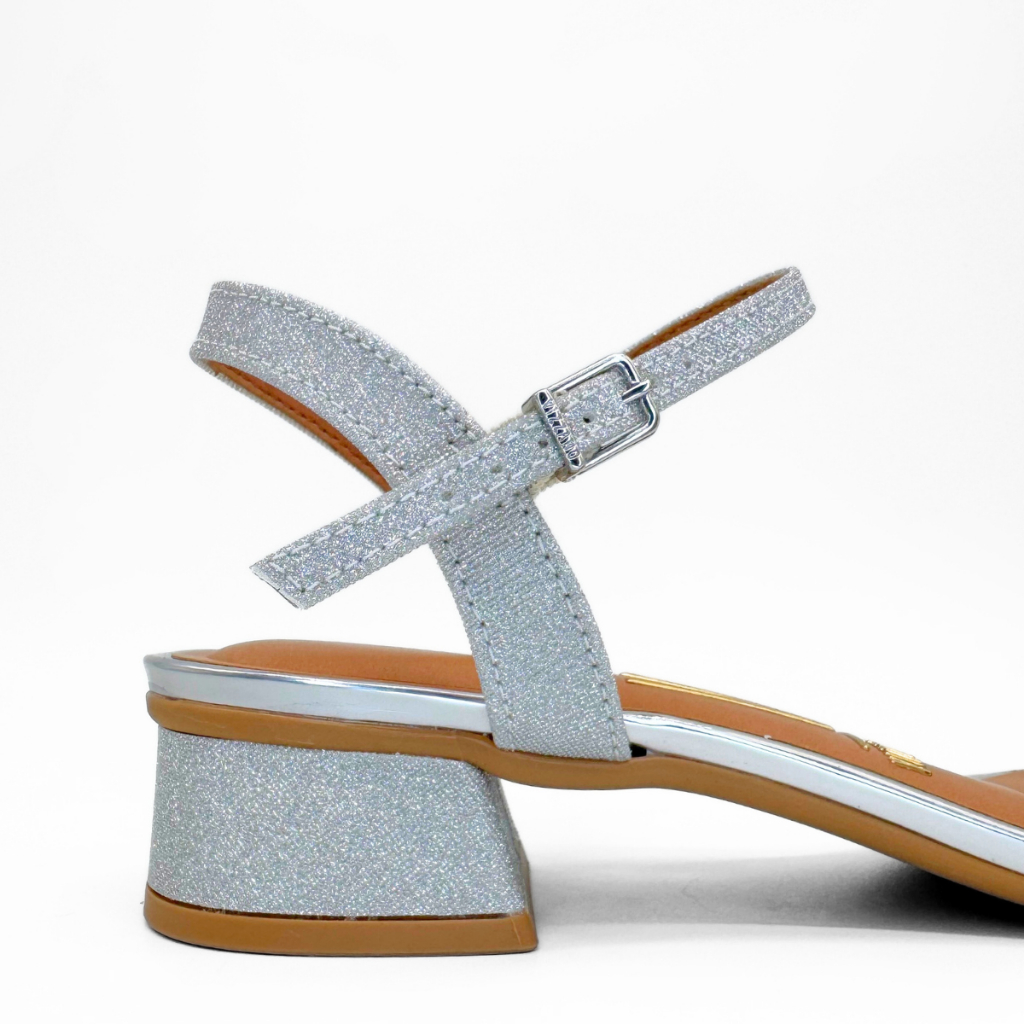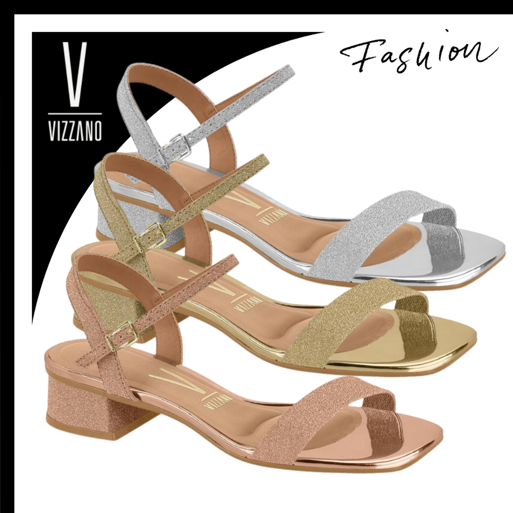 Sandália Salto Grosso Baixo Feminina Vizzano Brilhante Metalizada Macia Confortável Festa Eventos