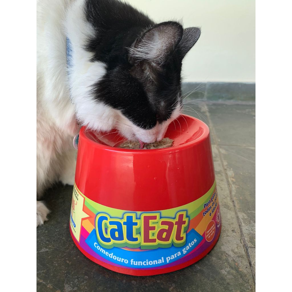 Comedouro Funcional Da Pet Games Alto Elevado E Raso Cat Eat Para Gato Confortável E Saudável