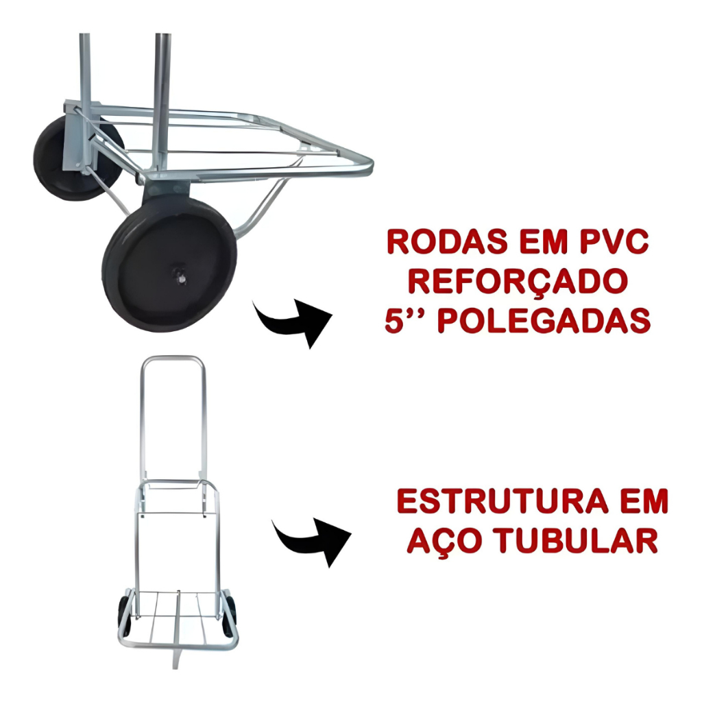 Carrinho De Mão Dobrável Bagagem Maleiro Carga Cooler Caixa Térmica Feira Sacoeira Praia até 65 Kg