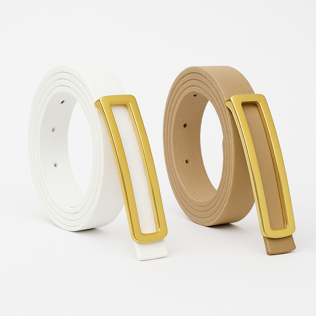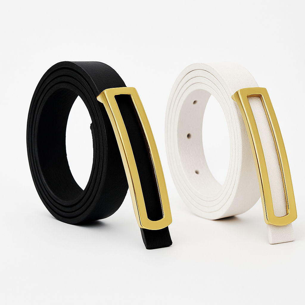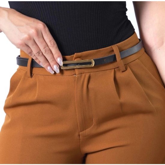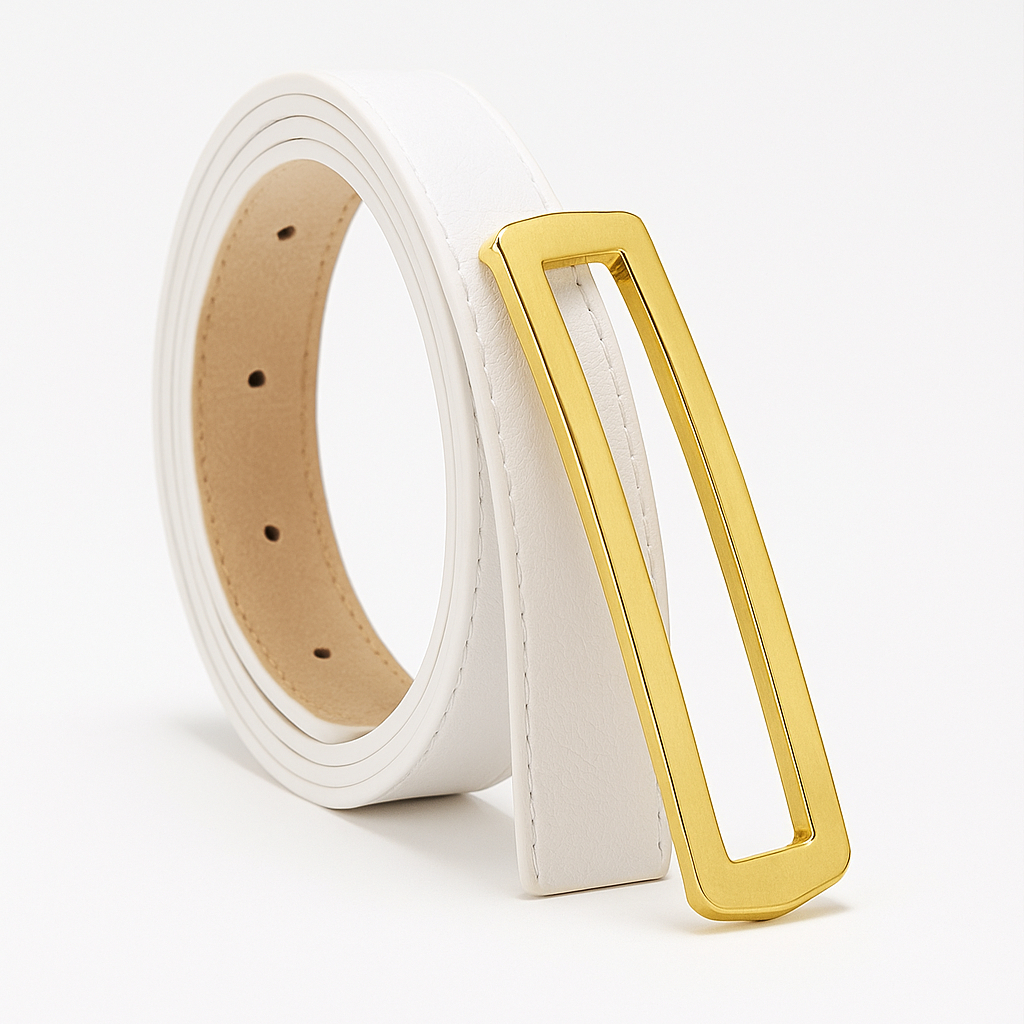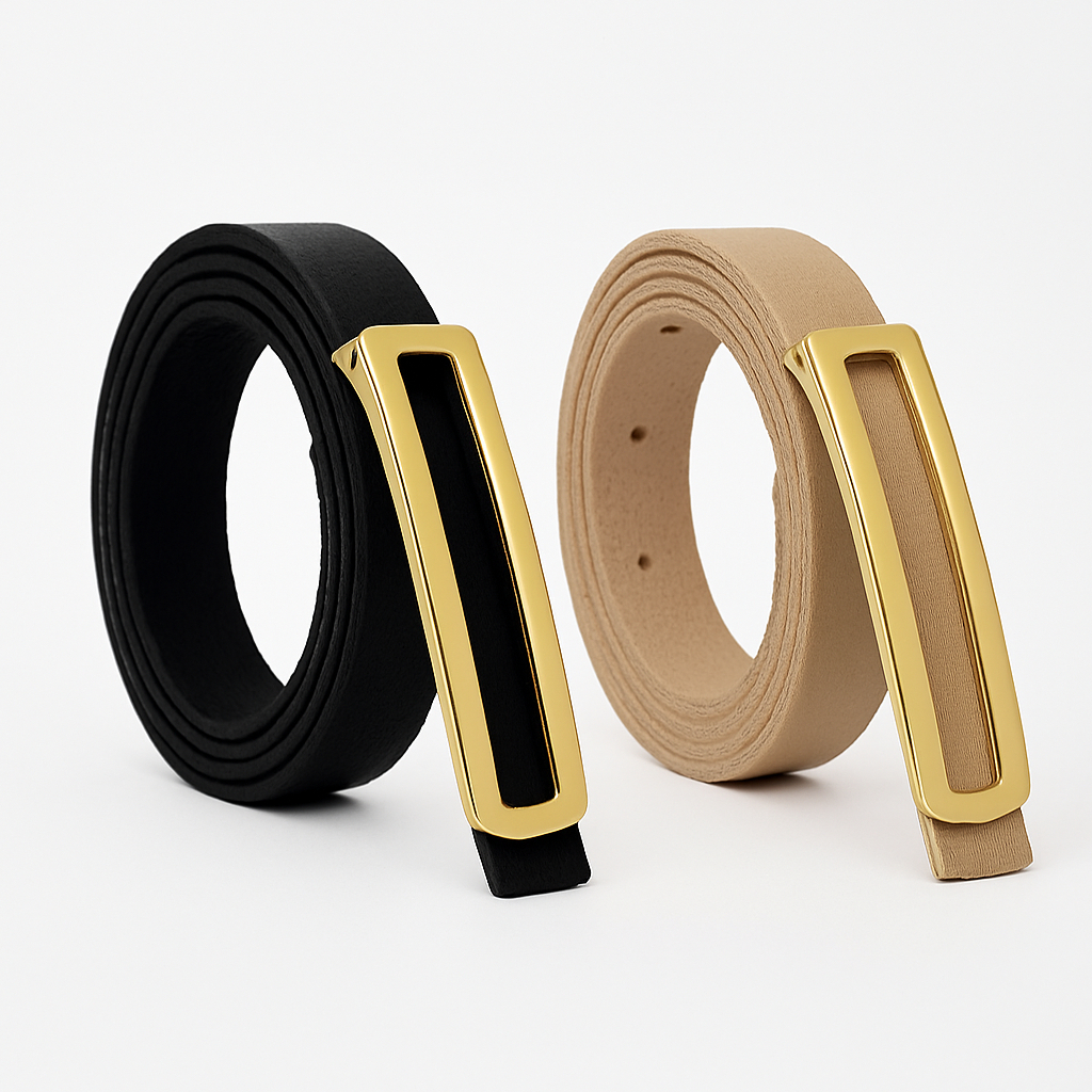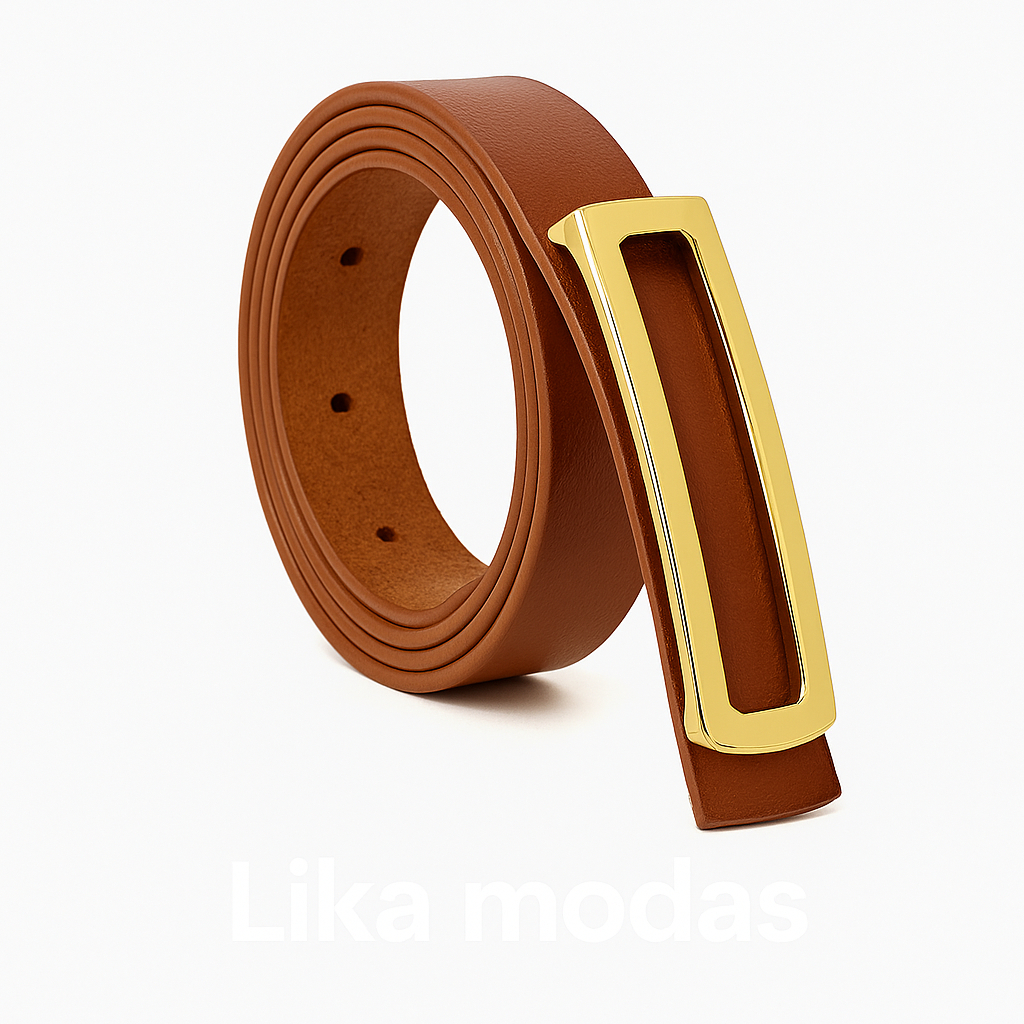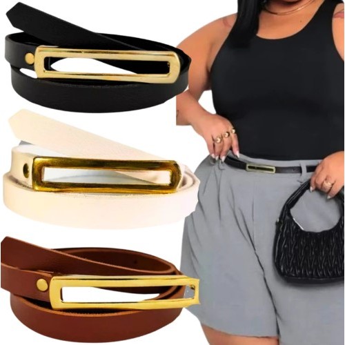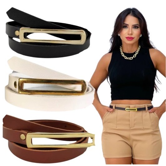 Cintos Feminino Couro com Fivela Retangular Fino Dourada AjustávelBlogueira Lika Modas