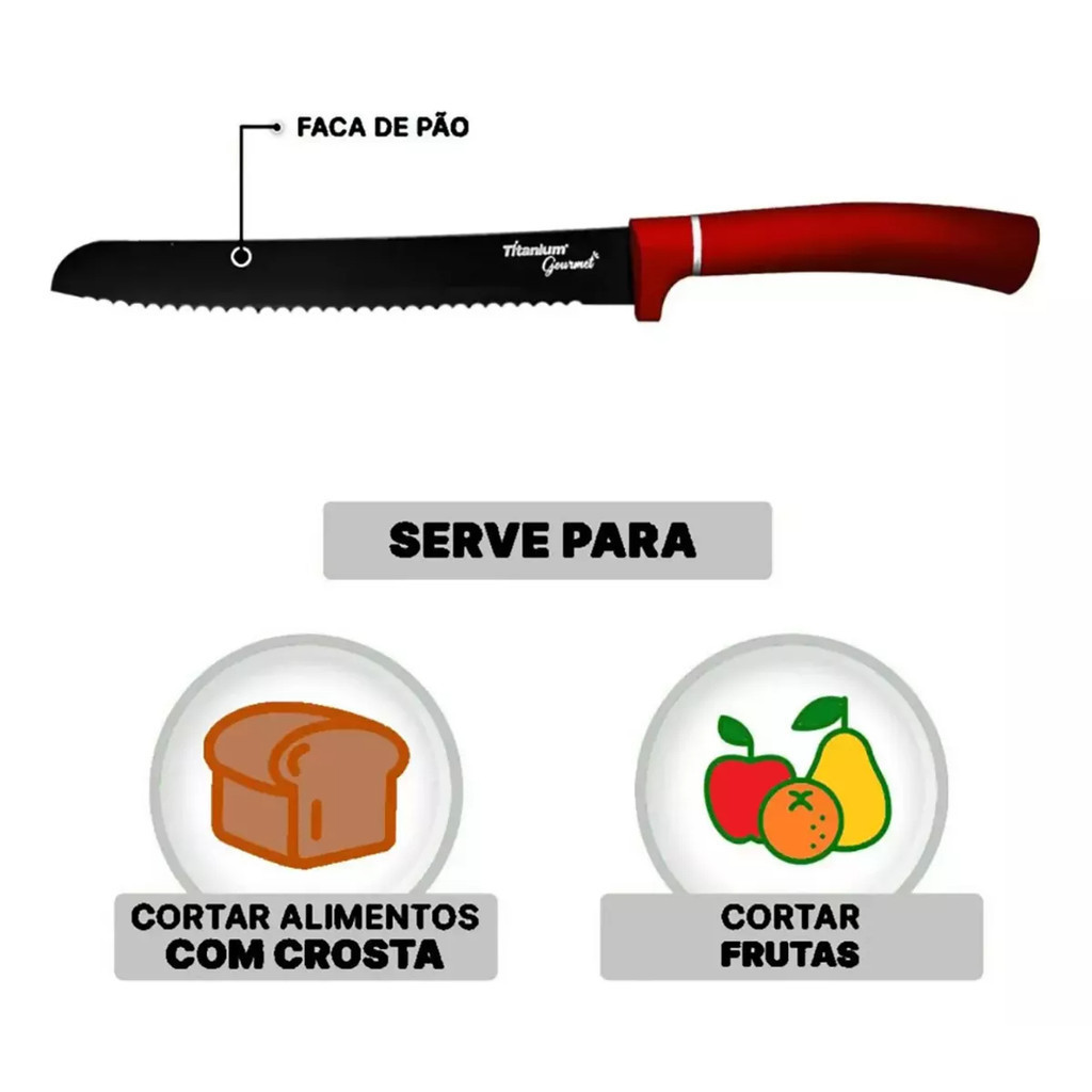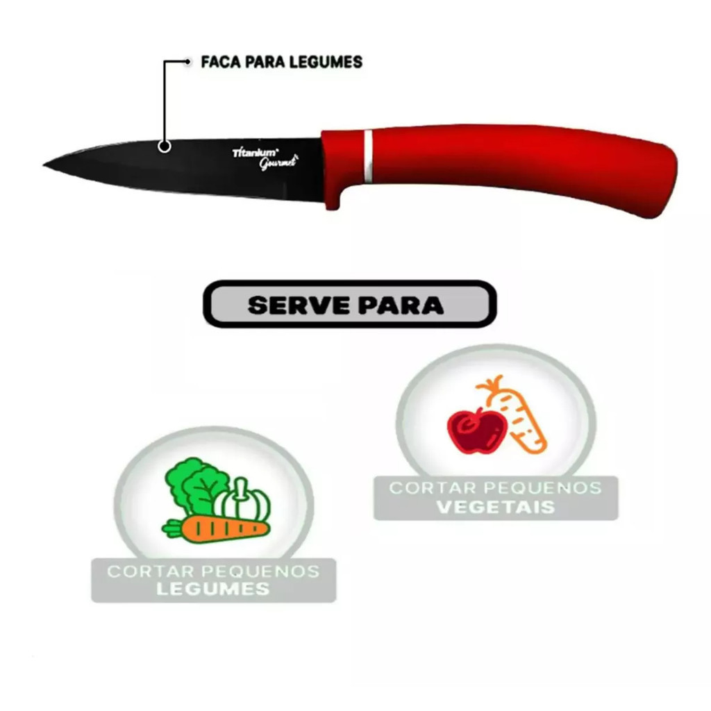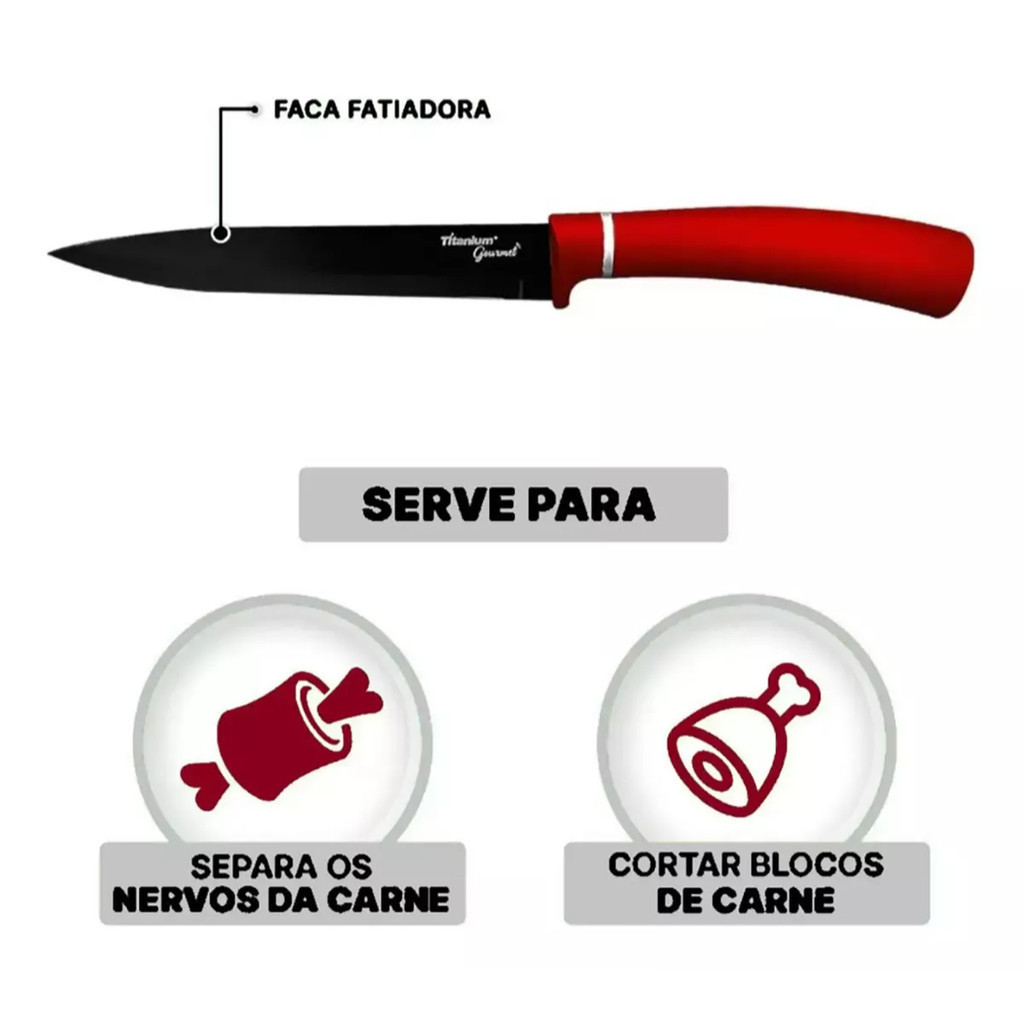 Kit de Facas Prime Chef 5 Peças Titanium Gourmet Vermelha – Aço Inoxidável de Alta Qualidade