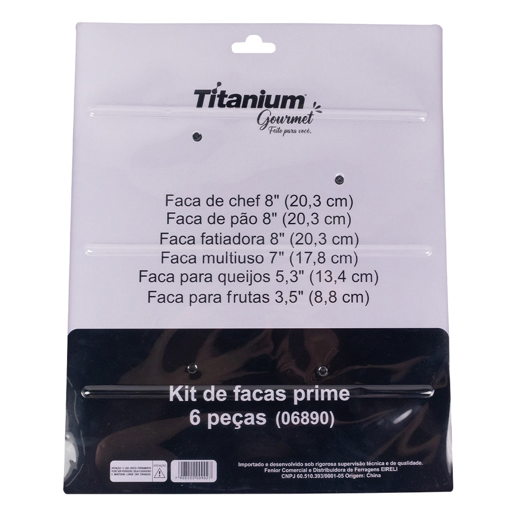 Kit Jogo de Facas de Cozinha Profissional Antiaderente 6 Peças Inox Prime Titanium Gourmet