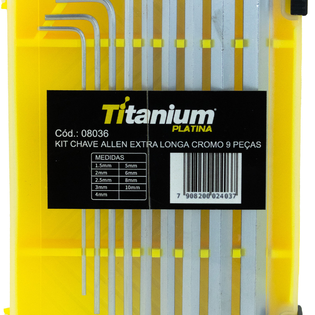 Kit Chave Allen Extra Longa 9 Peças CrV – Titanium Platina