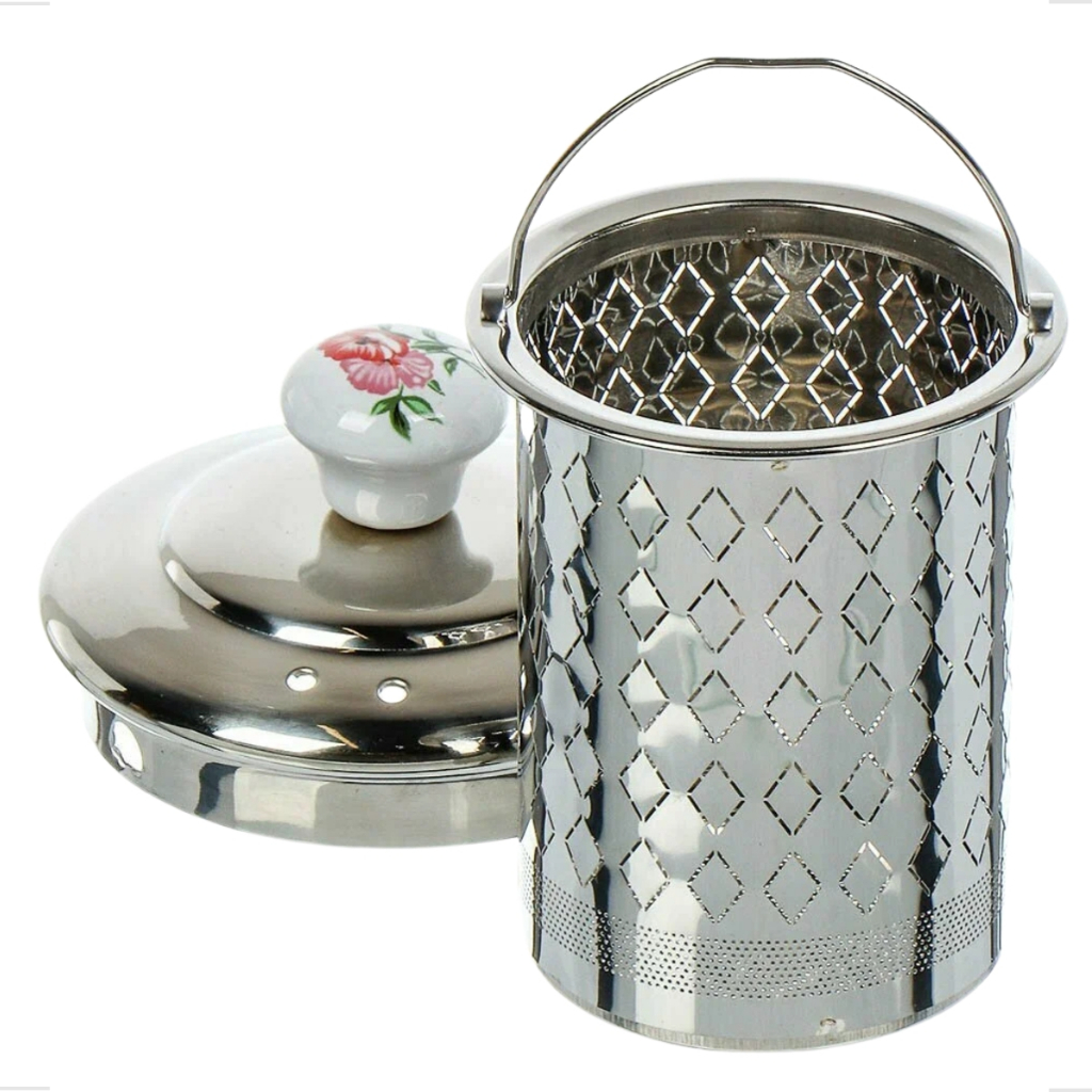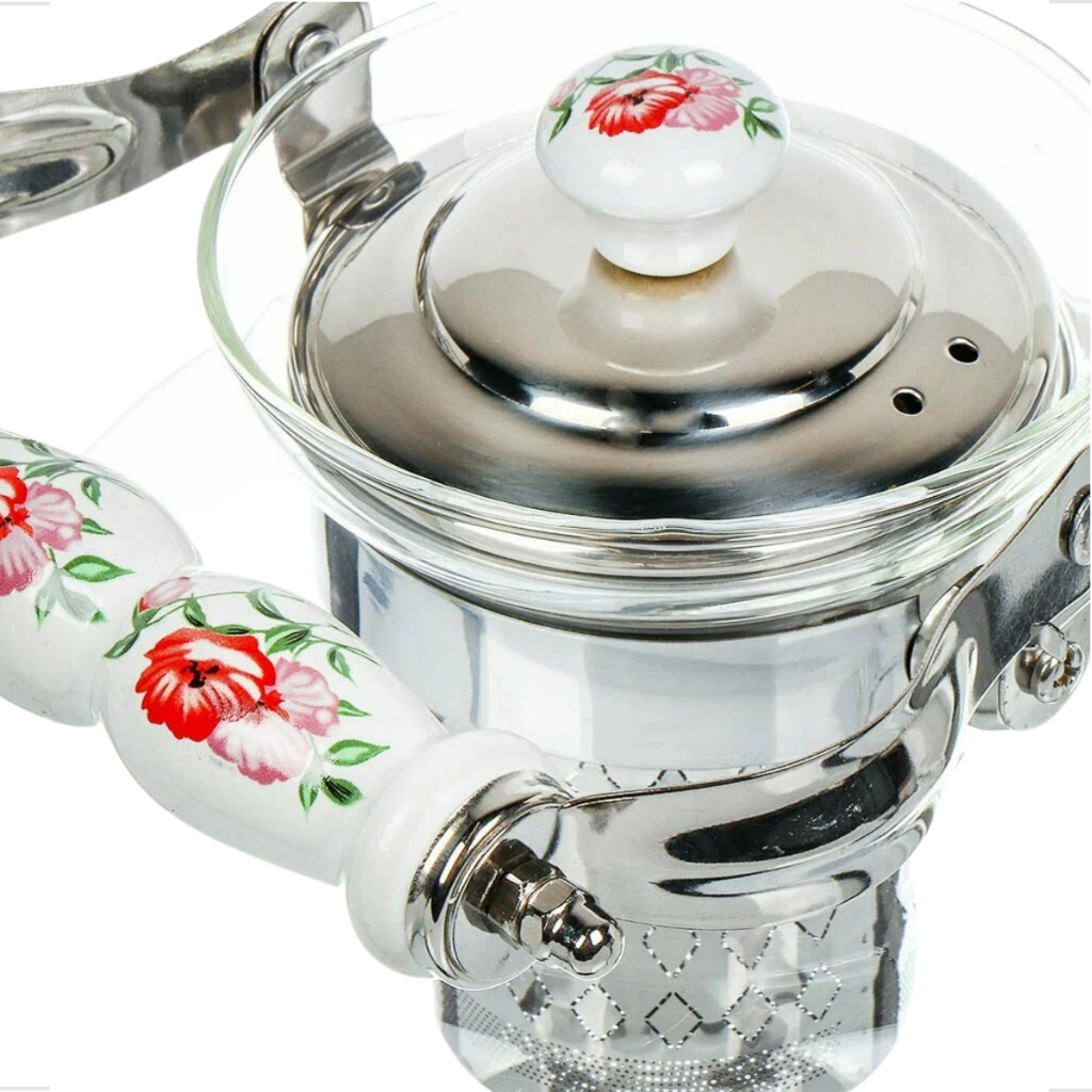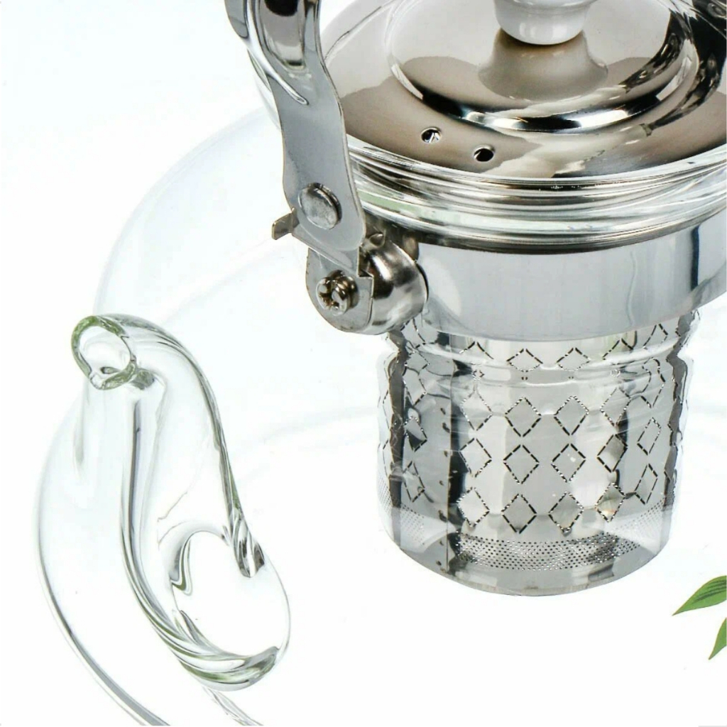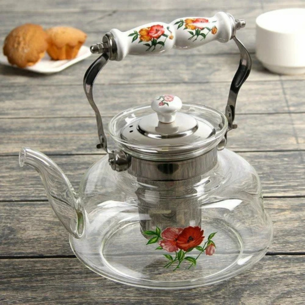 Chaleira Com Infusor De Inox Decorada Com Flor Decorada Chá Café Leite 1 Litro Vidro Vai Ao Fogo