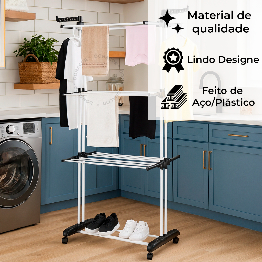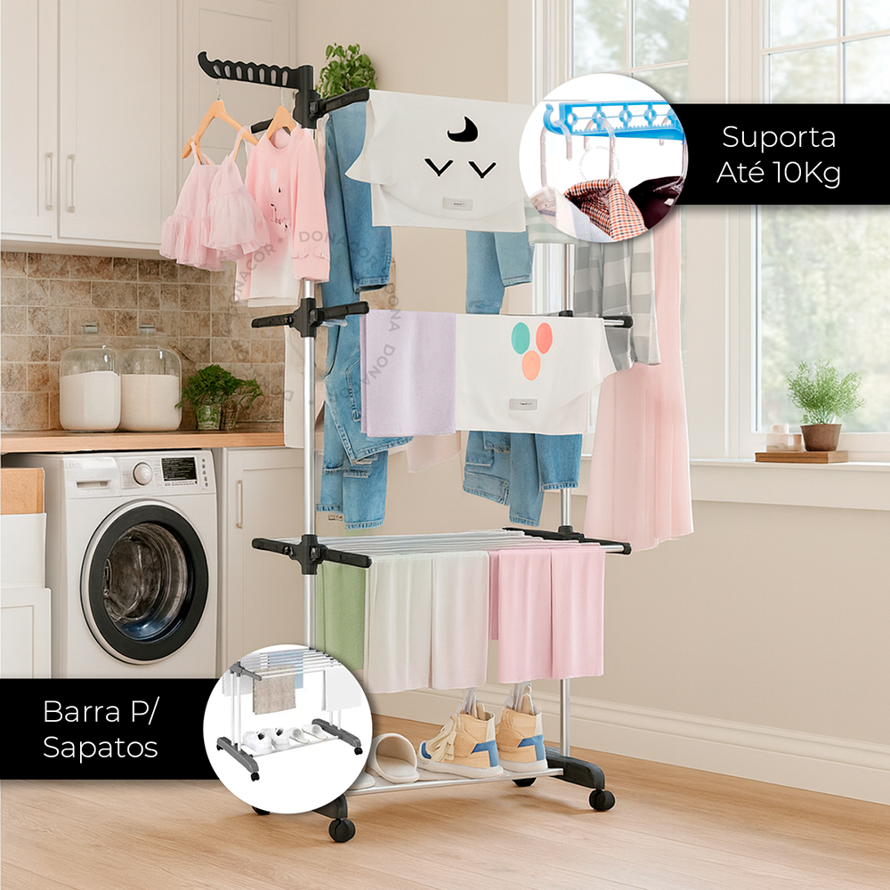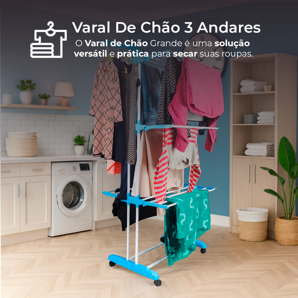 Varal De Chão Roupa Calcinha Grade 3 Andares Dobrável Portátil