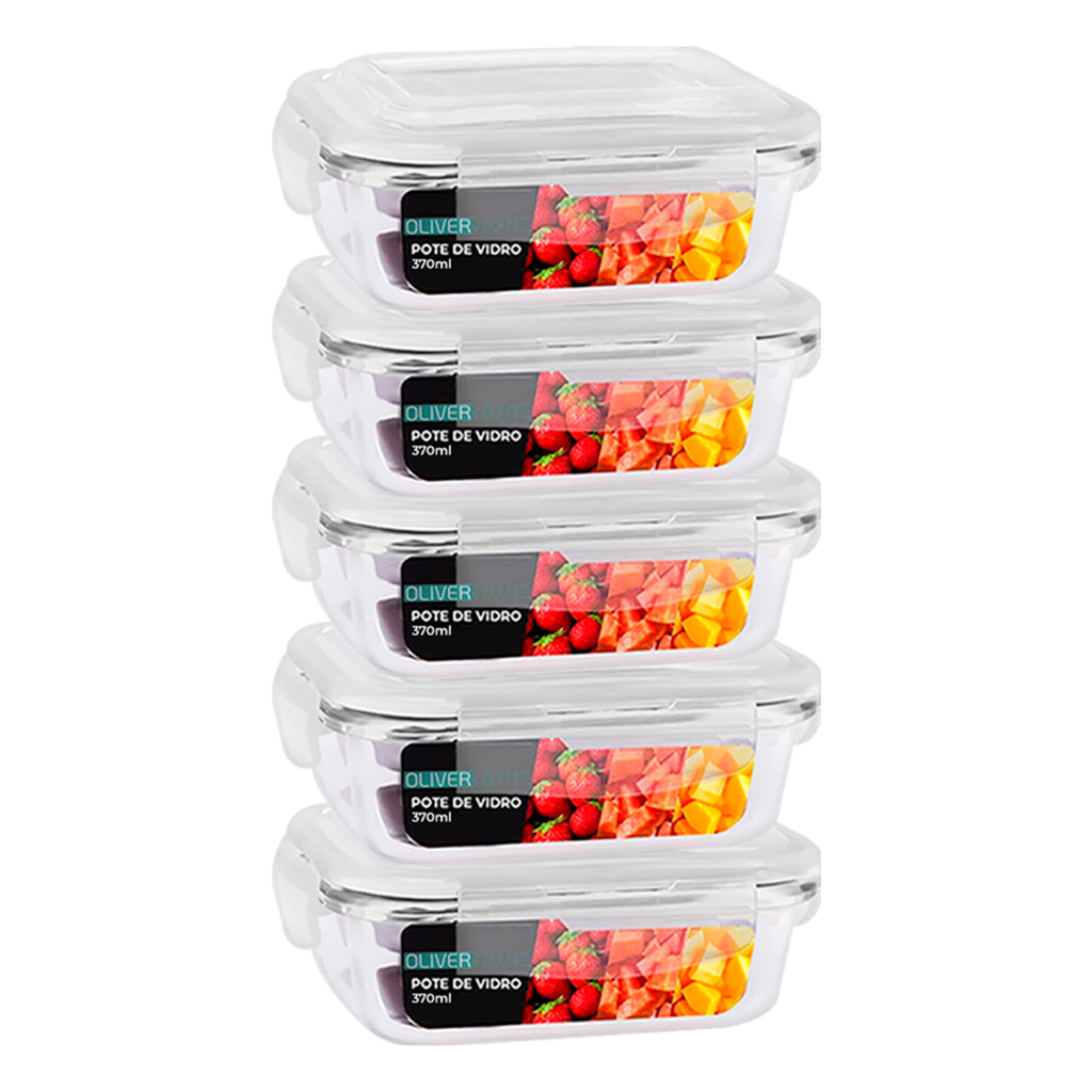 Conjunto Potes de Vidro 370ml Hermético Marmita Fit com Tampa 4 Travas OliverHome