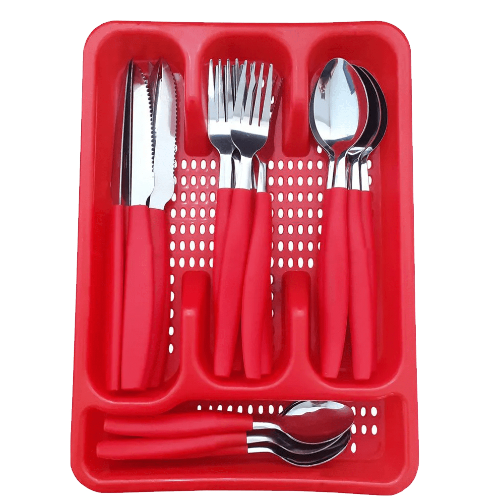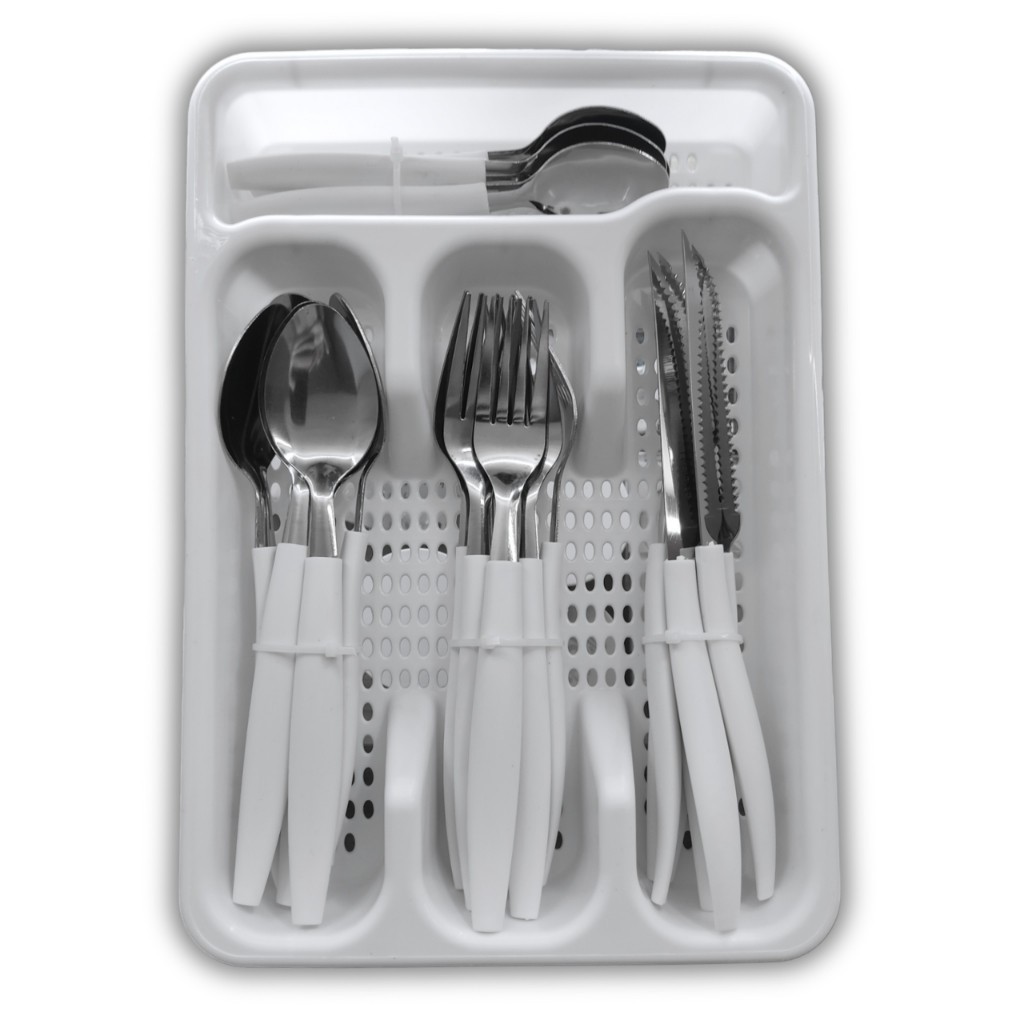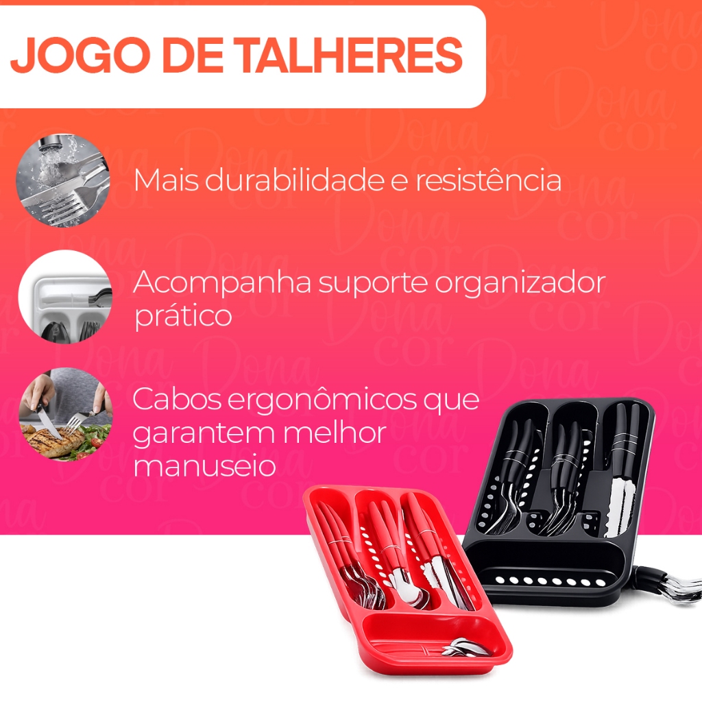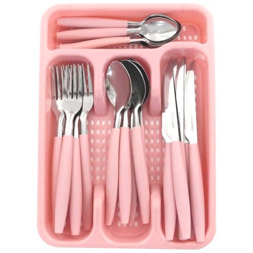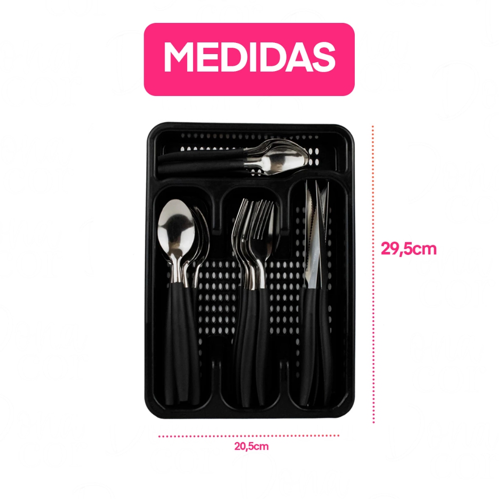 Jogo De Talheres inox Faqueiro Porta Talher Com 25 Peças Preto Branco E Rosa