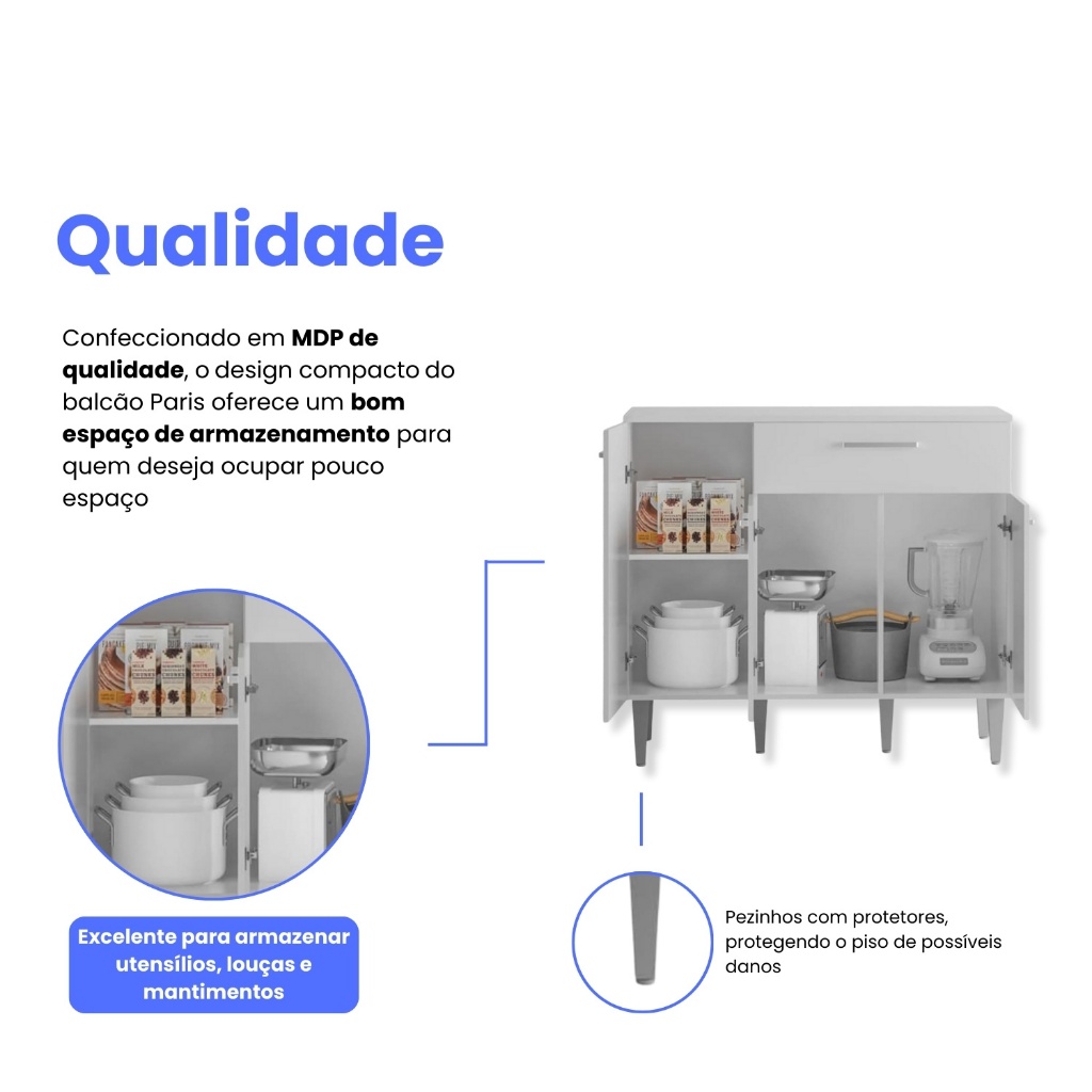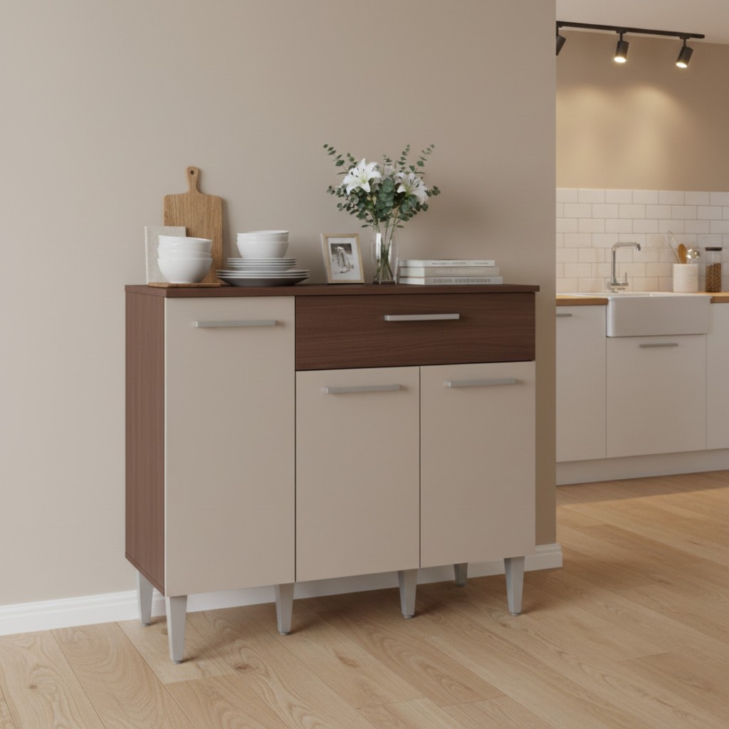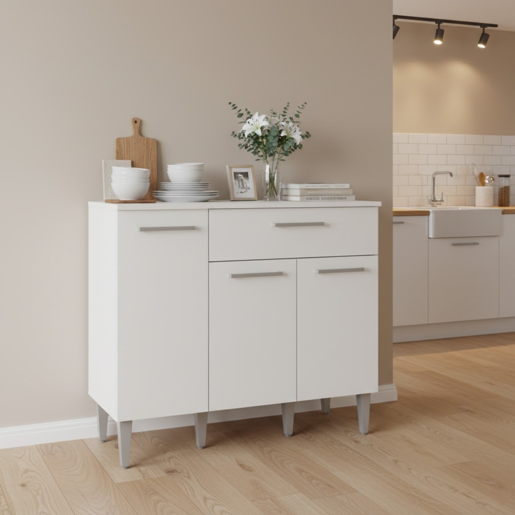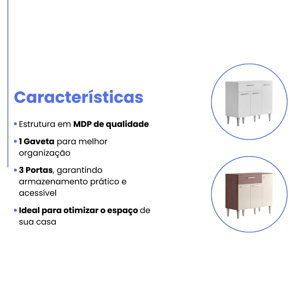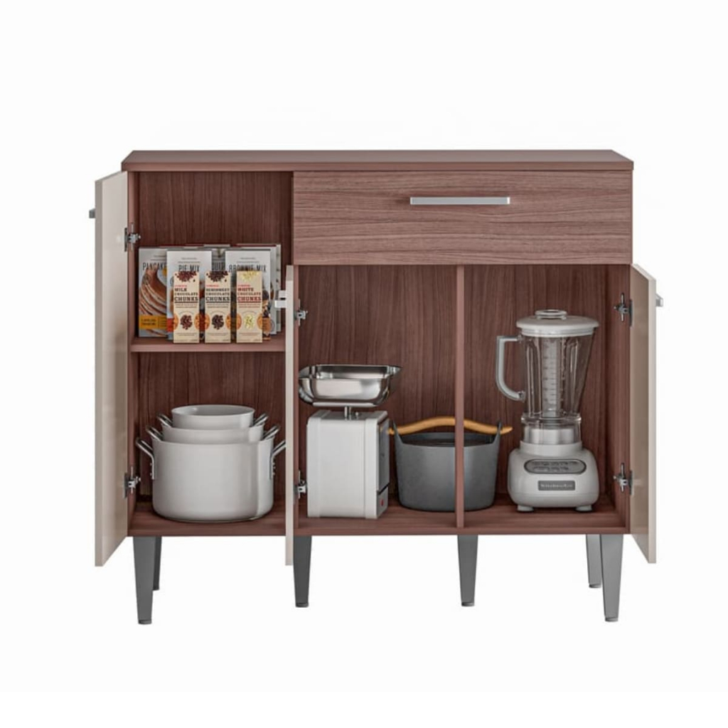 Armário Balcão Gabinete 90x80 cm Compacto Organizador Multiuso Madeira 3 Portas e 1 Gaveta Cozinha