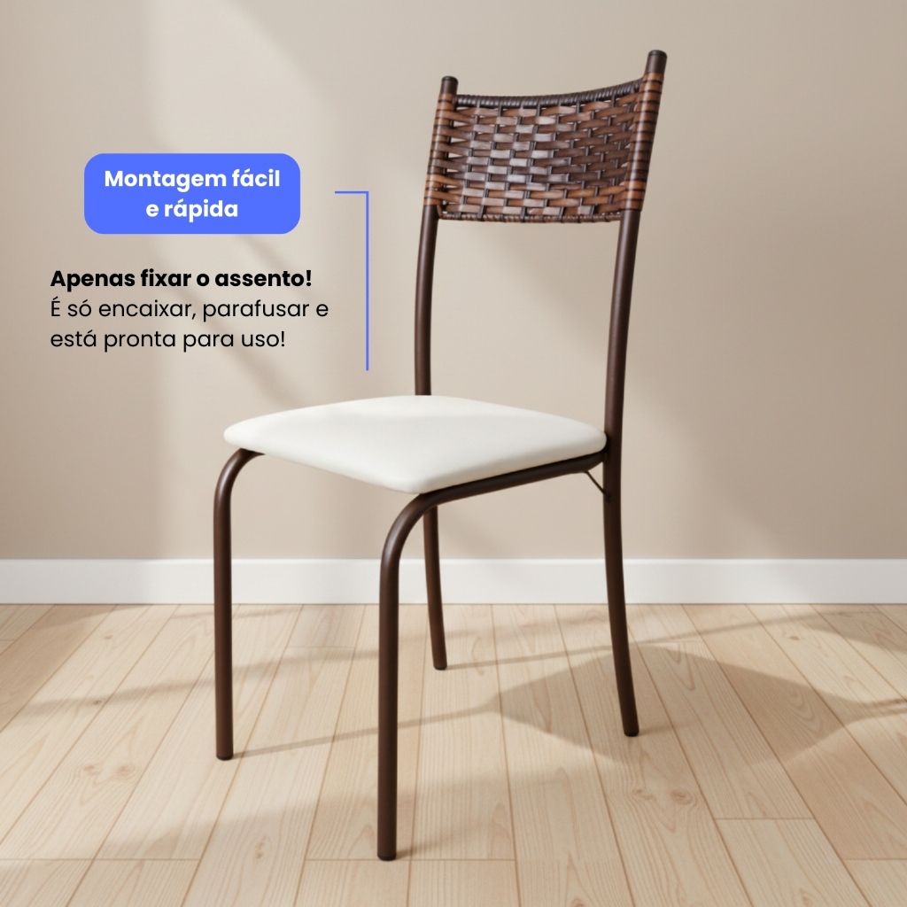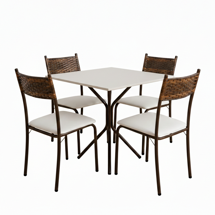 Conjunto Jogo Mesa Cozinha 4 Cadeiras Jantar Para Apartamento Pequeno Tubular Junco Fibra Sintética