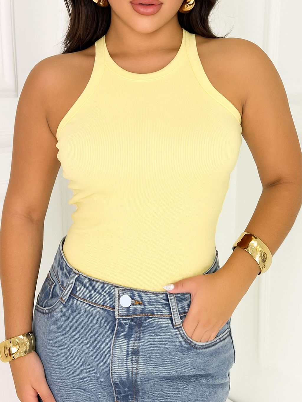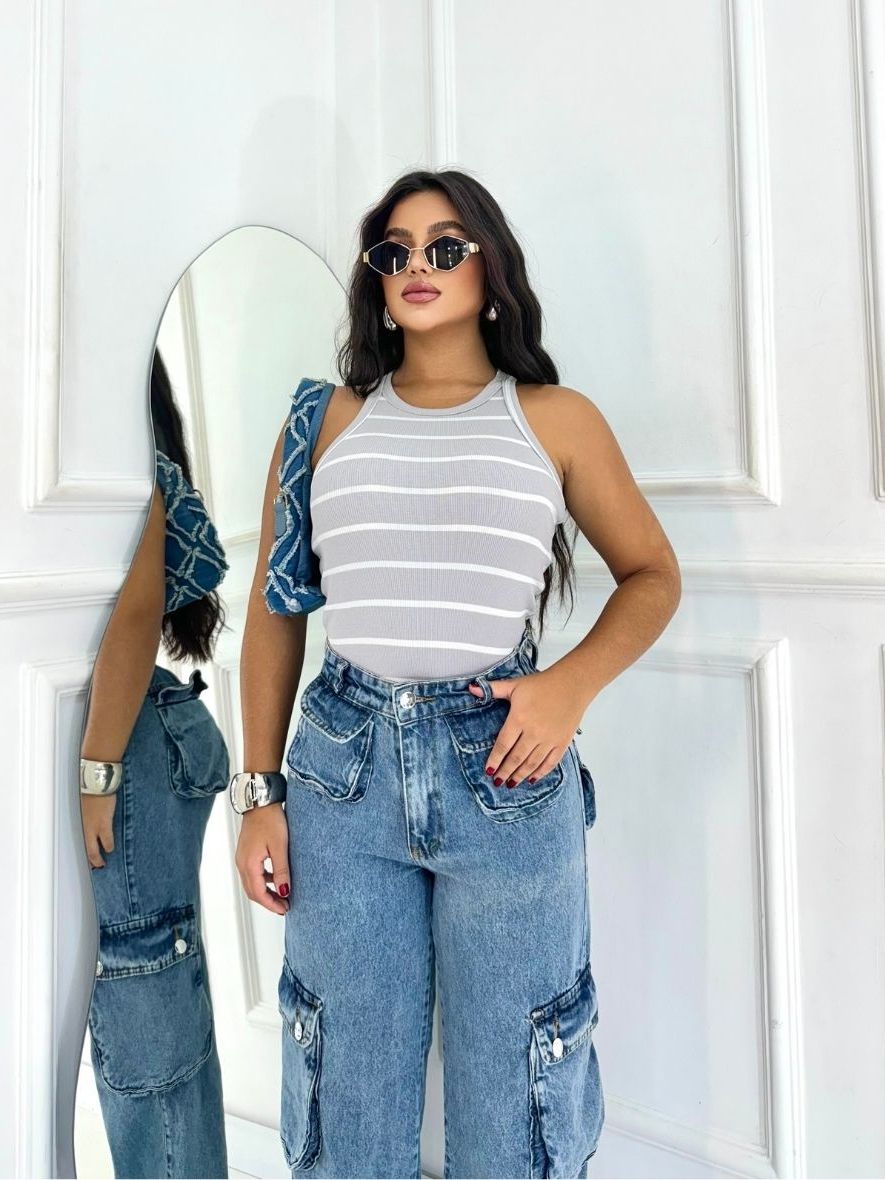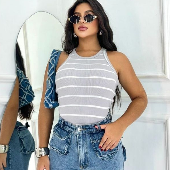 Regata Feminina listrada Canelada Blusinha Básica nadador verão 2025