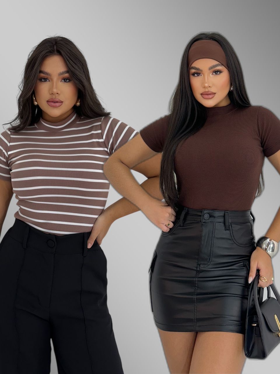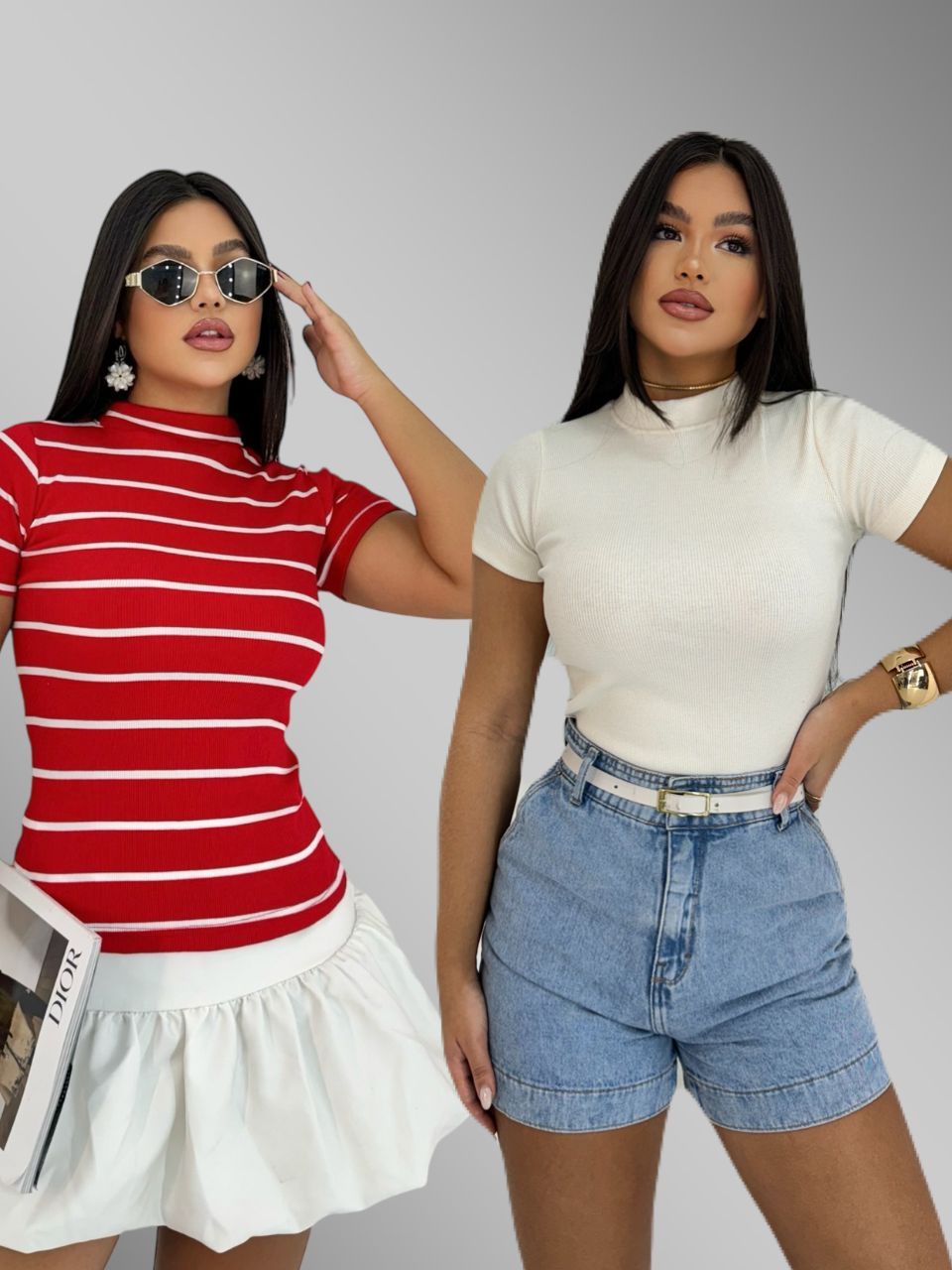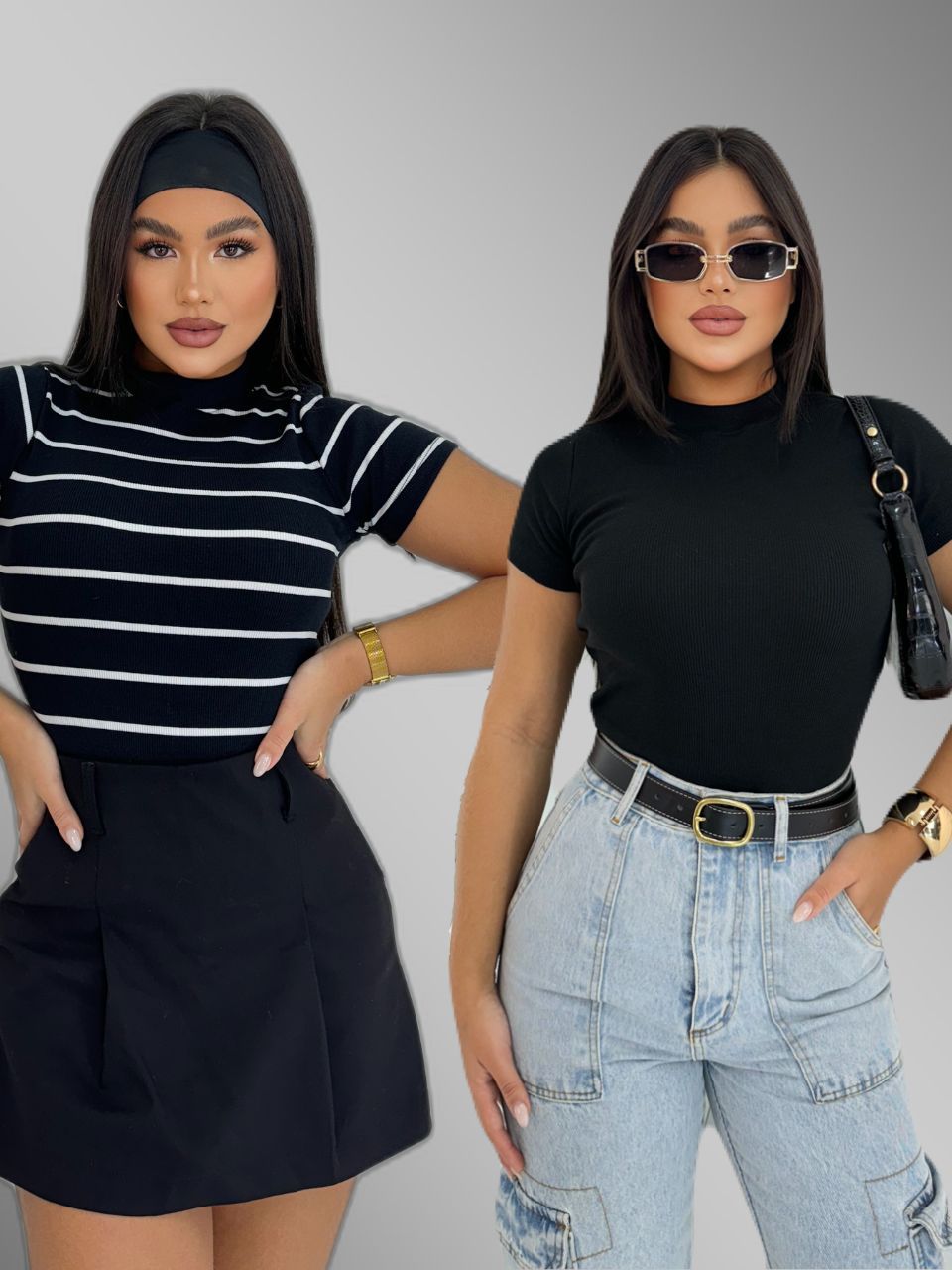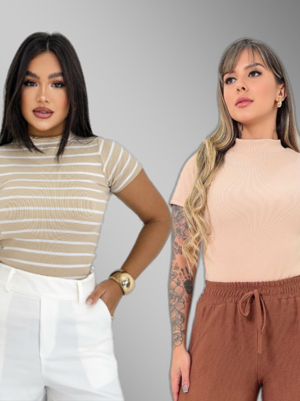 KIT 2 Blusa Básica Listrada e Lisa Ribana Canelado Premium Casual Moda Basico Camiseta T-Shirt