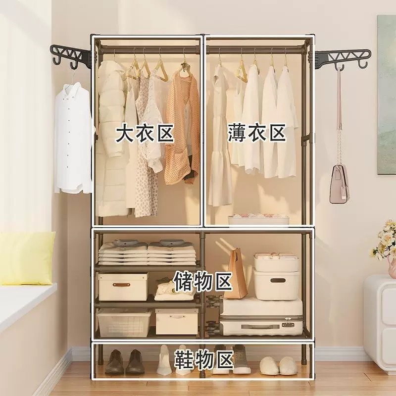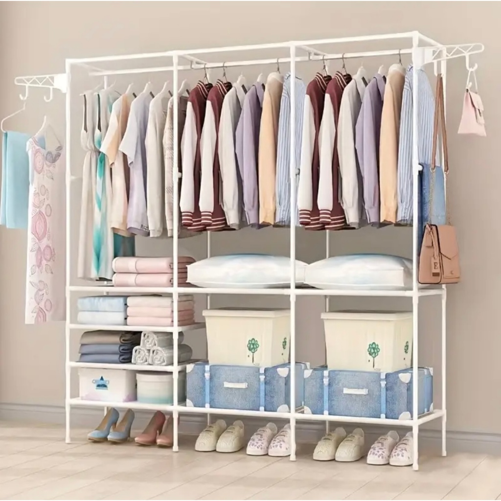 Guarda Roupa Arara Portátil Multifuncional Desmontável Organizador de Aço 2 ou 3 compartimentos
