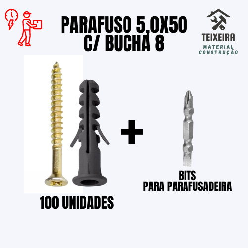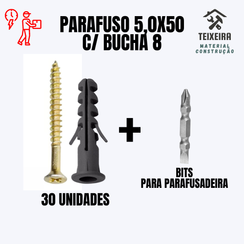Parafuso e Bucha 8 kit 30uni 50uni 100uni+Bits