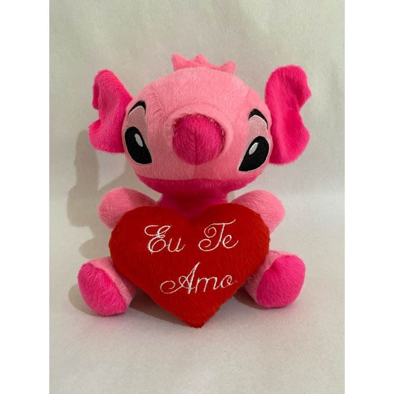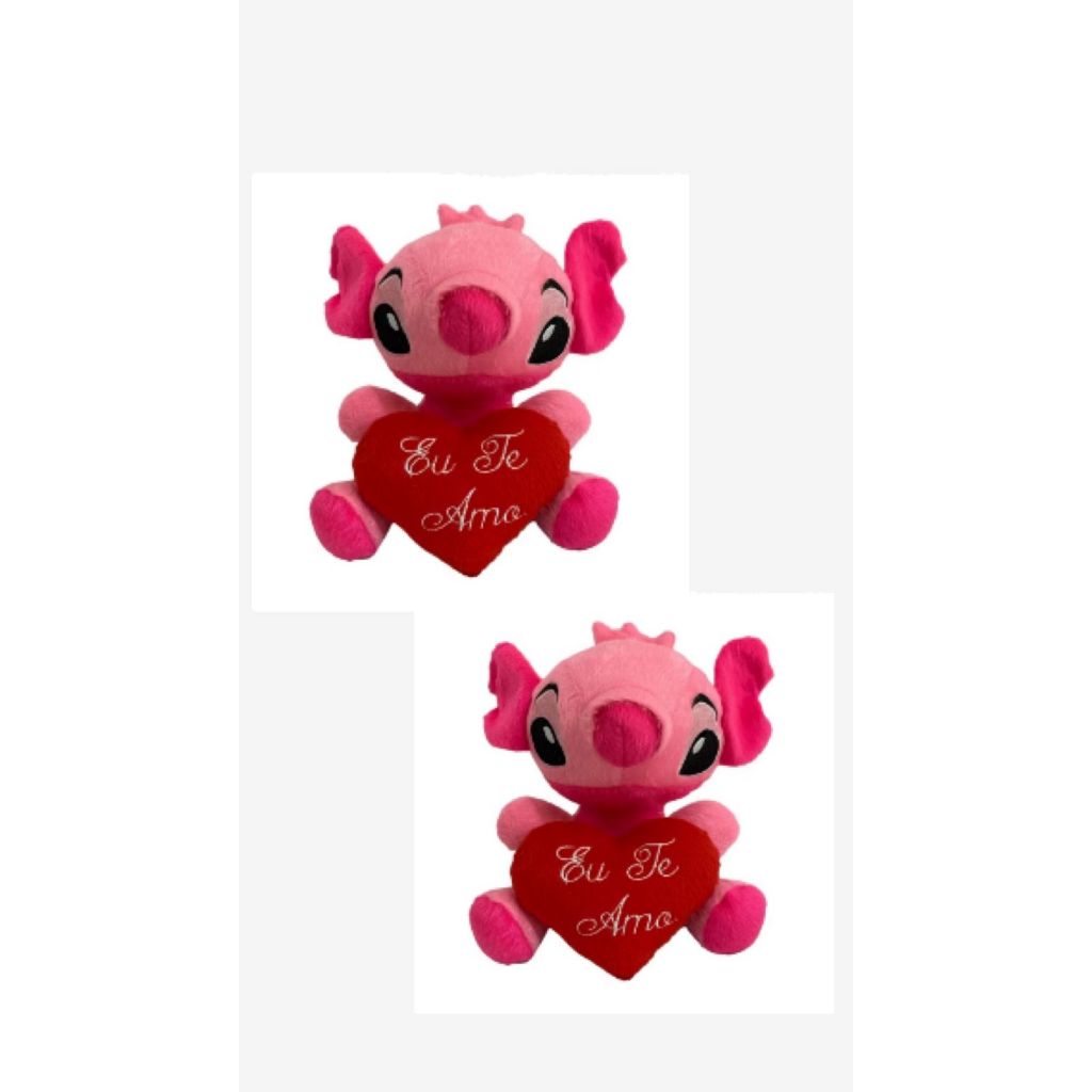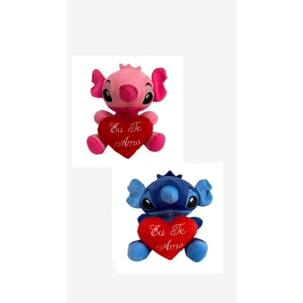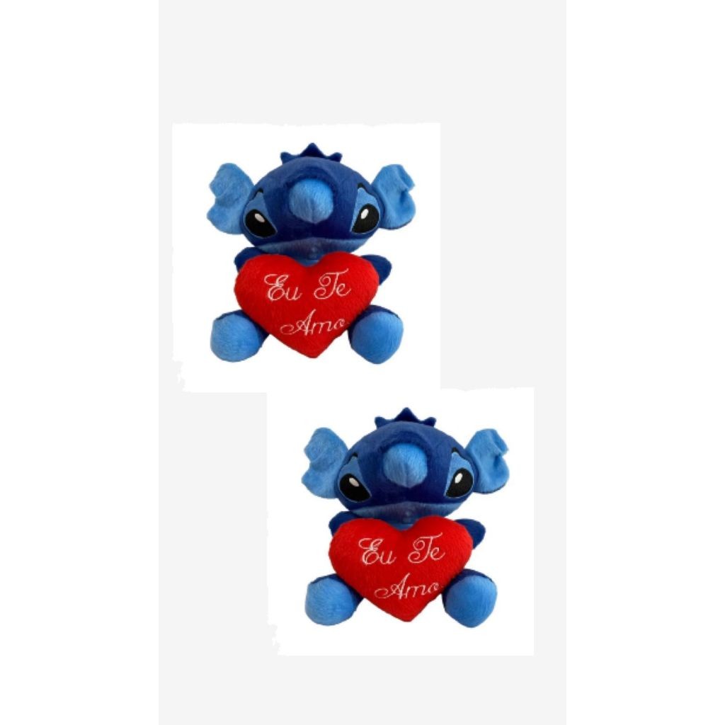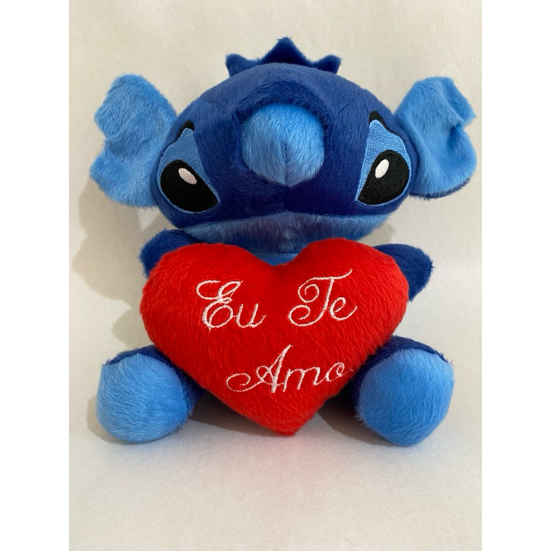 kit 5 e 10 Pelúcias Stich 20 cm com coração Eu te amo 10 cm
