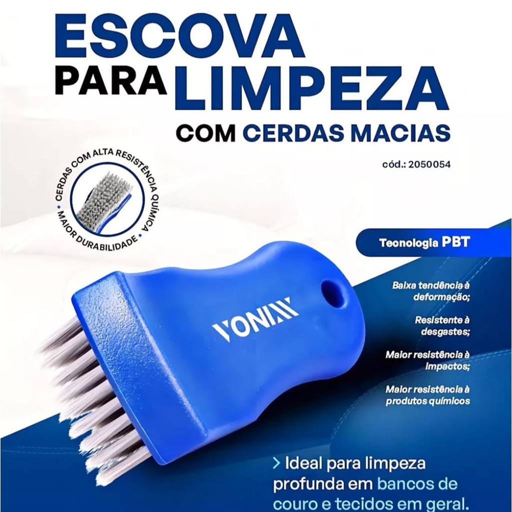 Escova Limpeza Banco Estofado Couro Cerdas Macias Vonixx