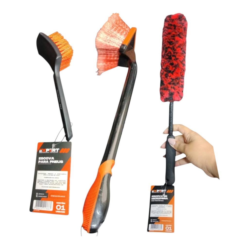 Kit De Escovas Limpeza Automotiva Lavar Rodas 3 Pçs Expert