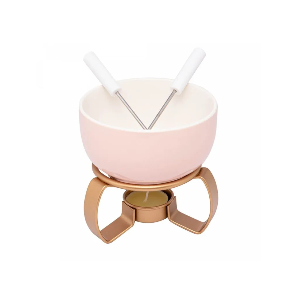 Aparelho de Fondue de Porcelana Rosa com Branco - 4 Peças 350 ml - Ref. 5877 - casa nova - dia dos namorados - presente