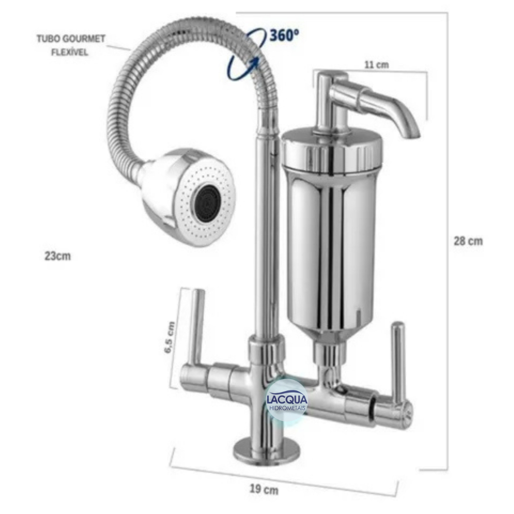 Torneira com Filtro Cozinha Tubo Gourmet de Bancada 100% Metal Luxo