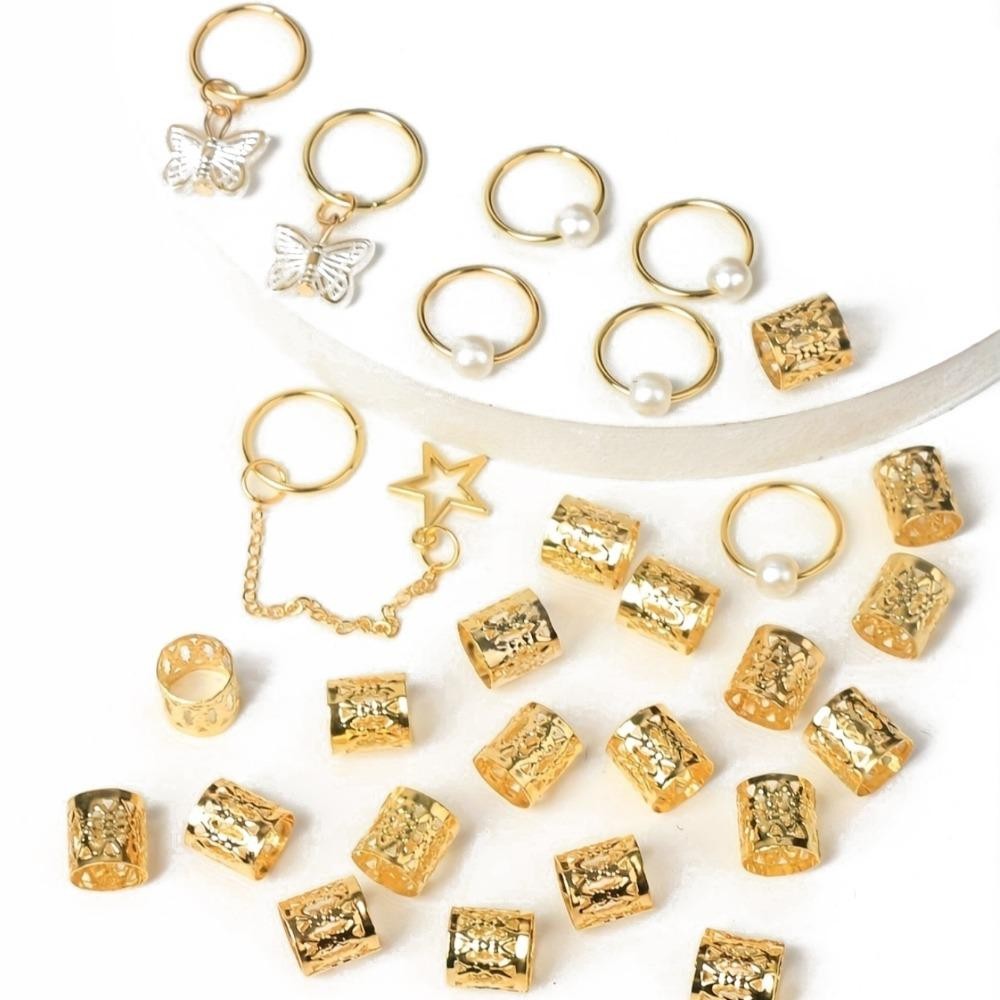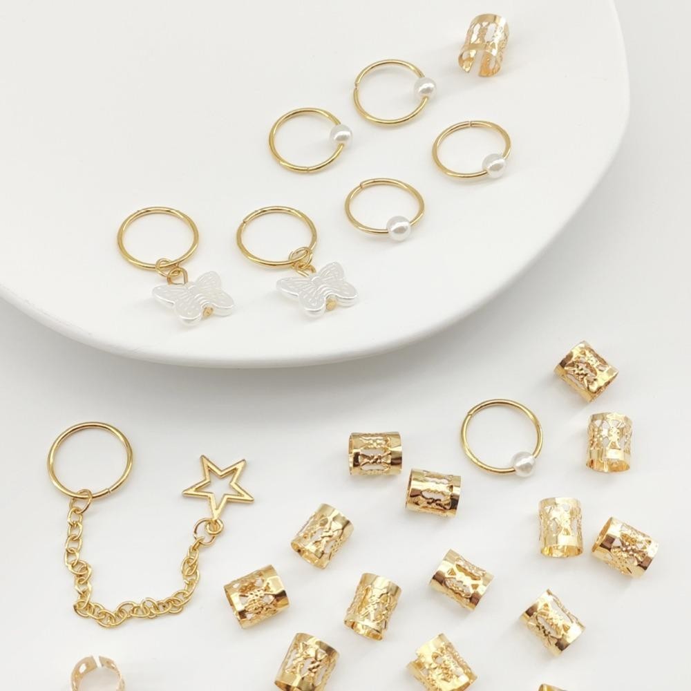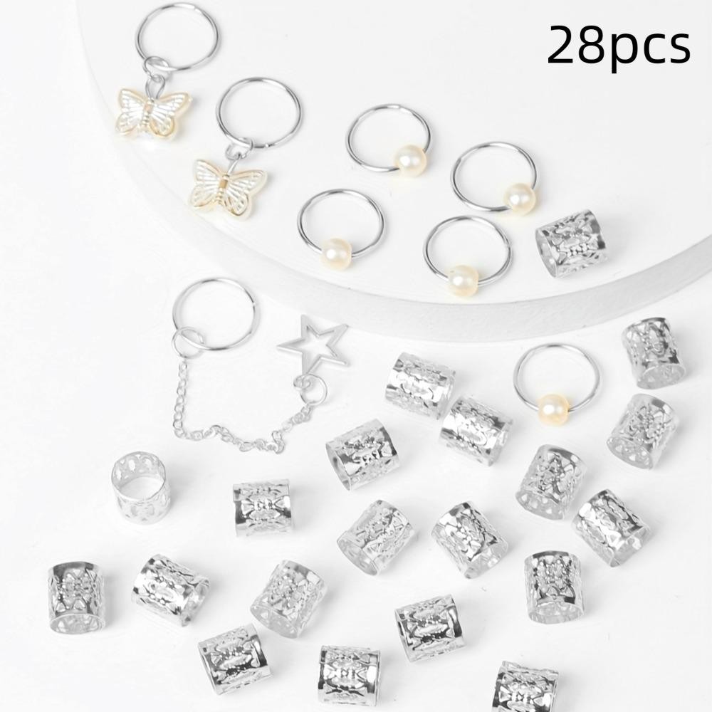 SEIFINI 28 Unidades De Contas De Dreadlocks , Clipes De Punho De Metal Dread Locks Anel De Cabelo Oco , Ouro E Prata