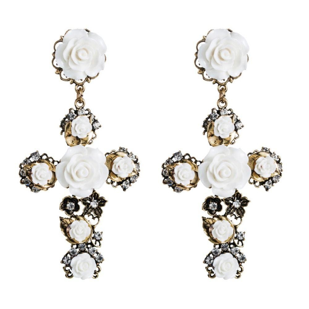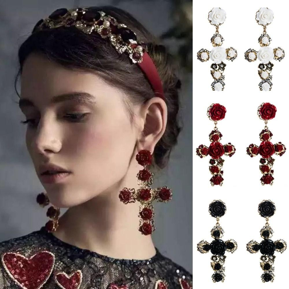 Brincos De Orelha De Cristal SEIFINI , Longos De Cruz Rosa Estilo Barroco , Joias Góticas Flores