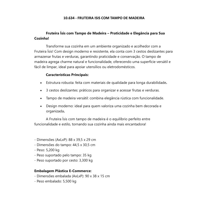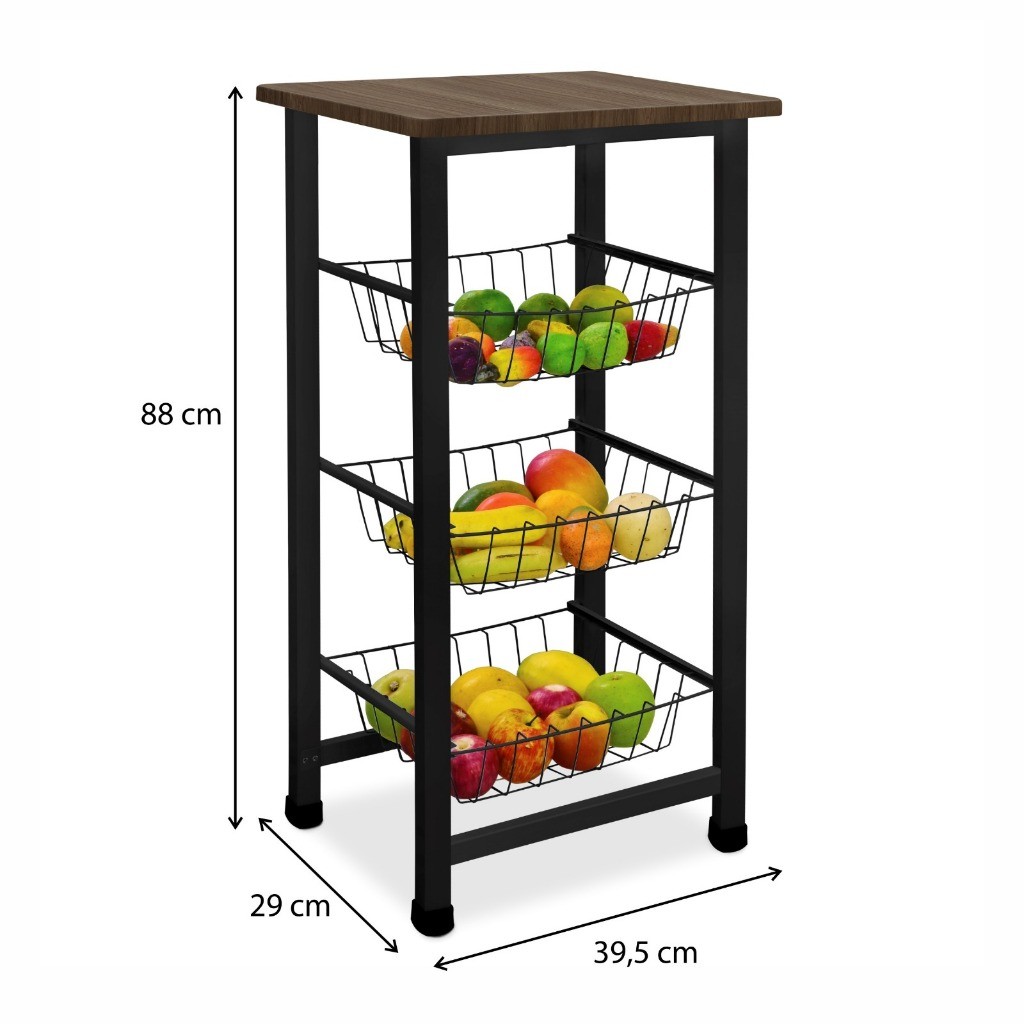 Fruteira Chão Cozinha Multiuso Tampo De Madeira