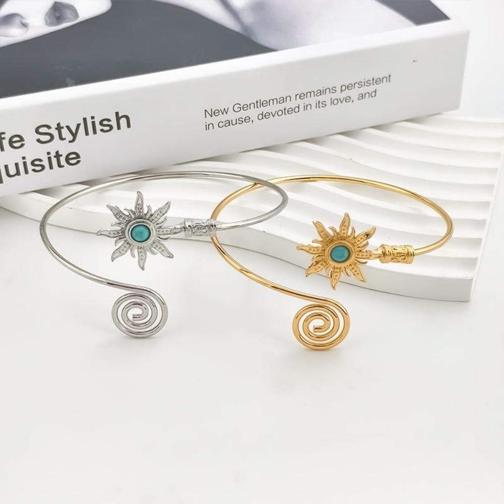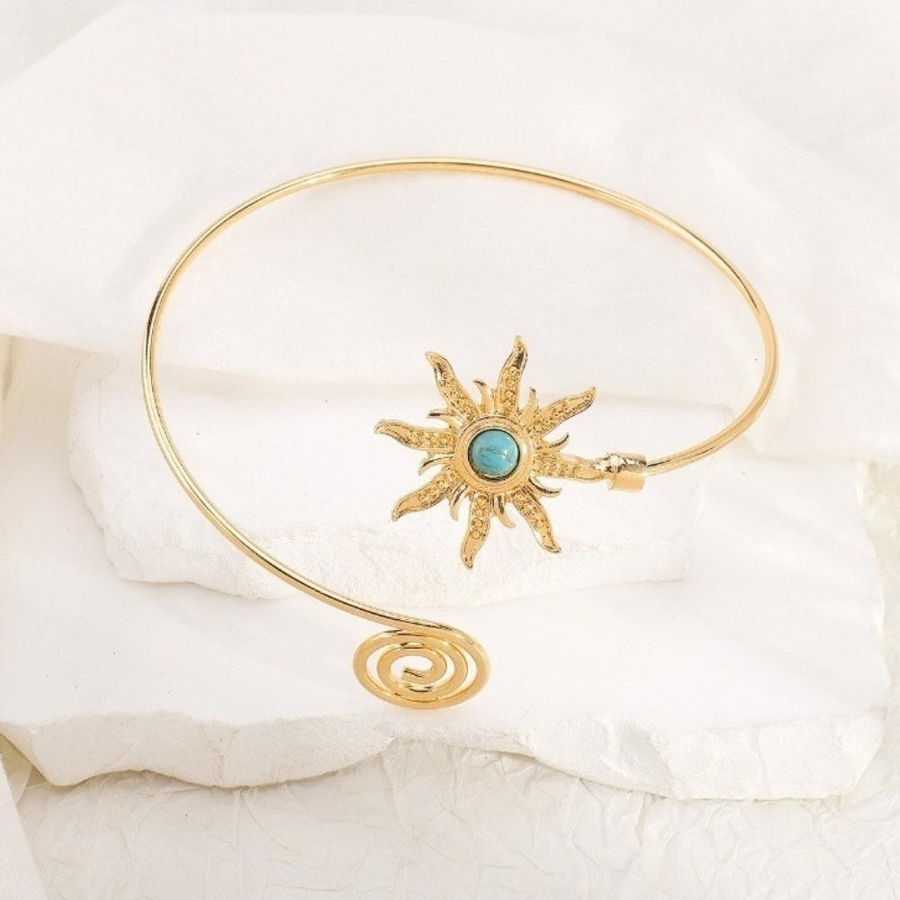 Punho De Braço SUNDANCE , Pulseira De Turquesa De Liga Para Mulheres , Corrente Exagerada De Sol , Aberto Largo Feminino