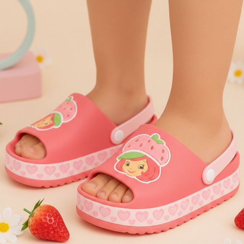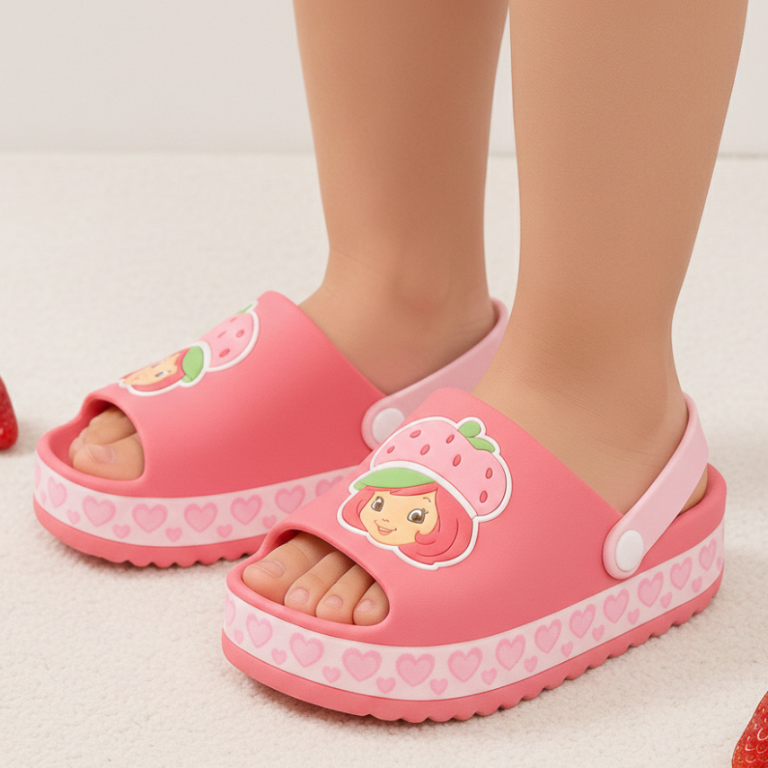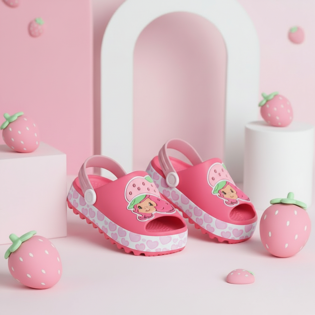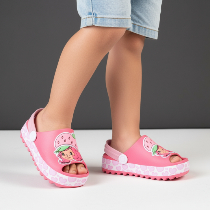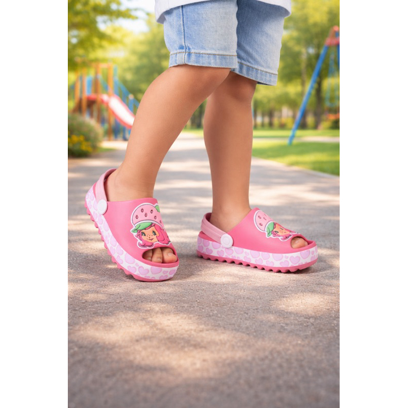 Sandália Infantil Babuche Menina Slide Moranguinho Baby Rosa Confortável Volta as Aulas Verão