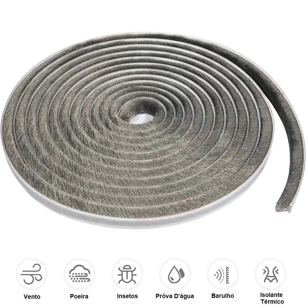 Fita Veda Fresta Porta Escovinha Adesiva Vedação Janela - 5 Metros