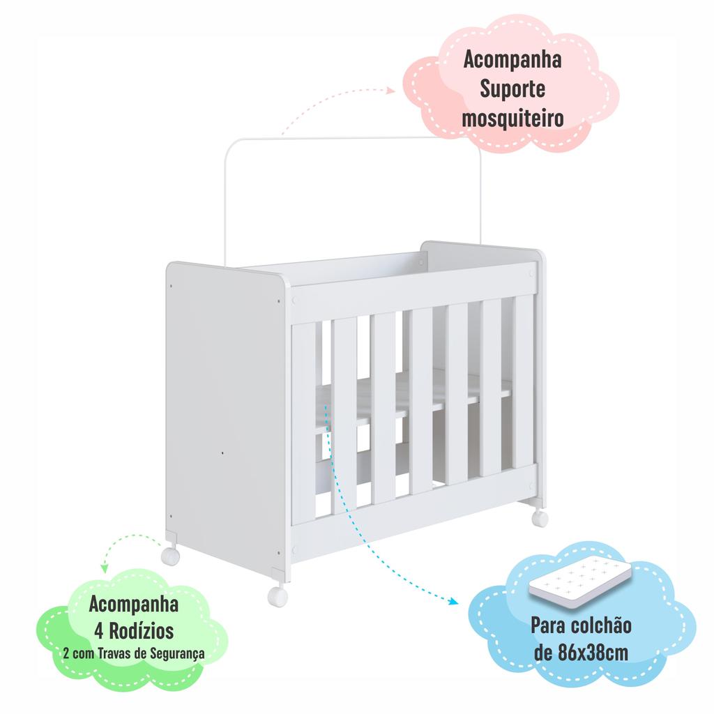 Mini Berço Infantil Moisés Multifuncional 4 em 1 com Rodas para Quarto de Bebê