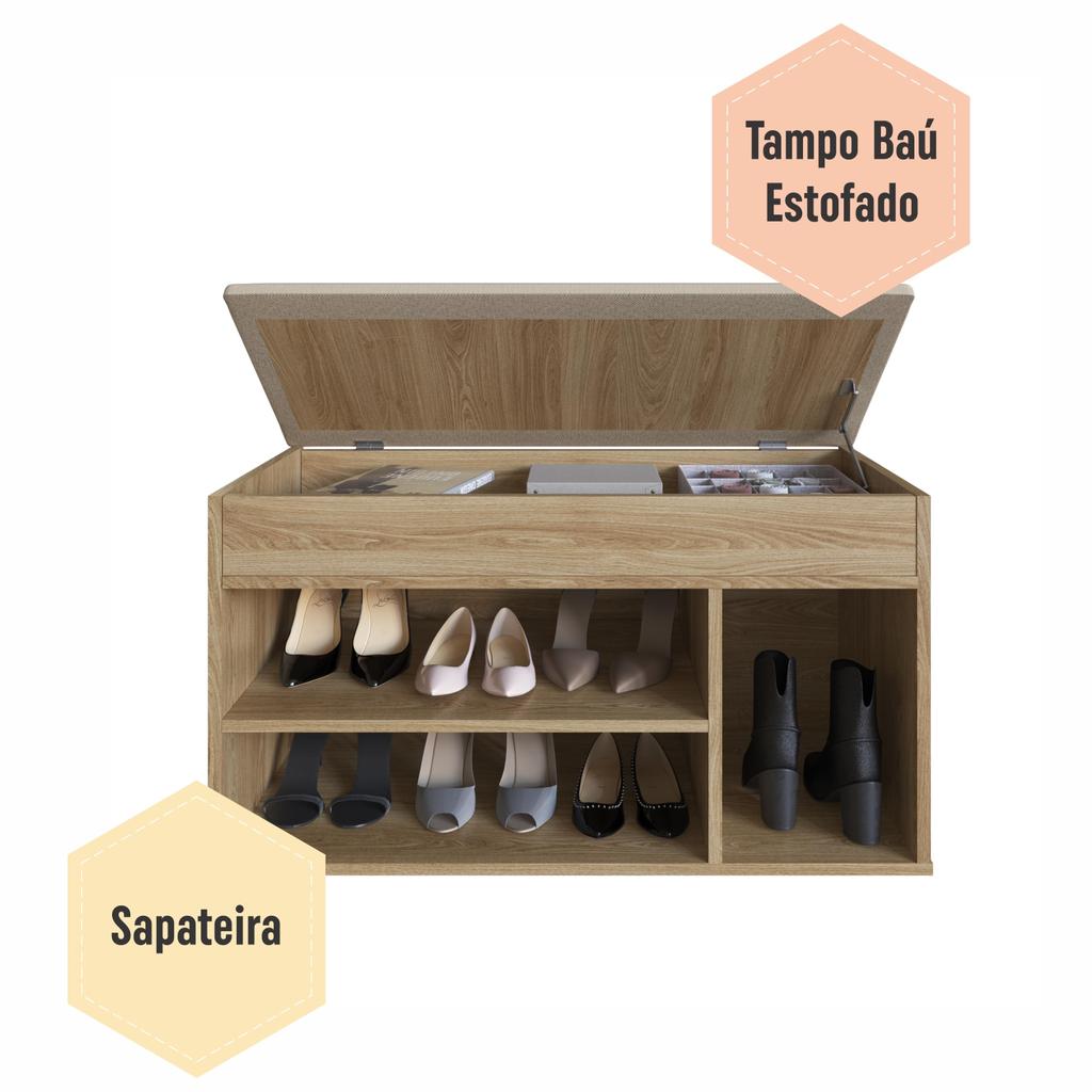 Sapateira Banco Baú Organizador 81cm 7 pares com Tampo Estofado
