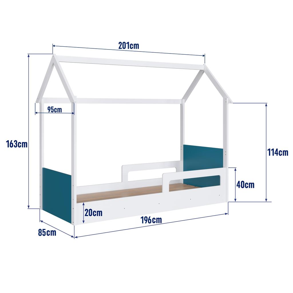 Cama Infantil Montessoriana Casinha Menino Menina Solteiro com Proteção Lateral Branco com Azul
