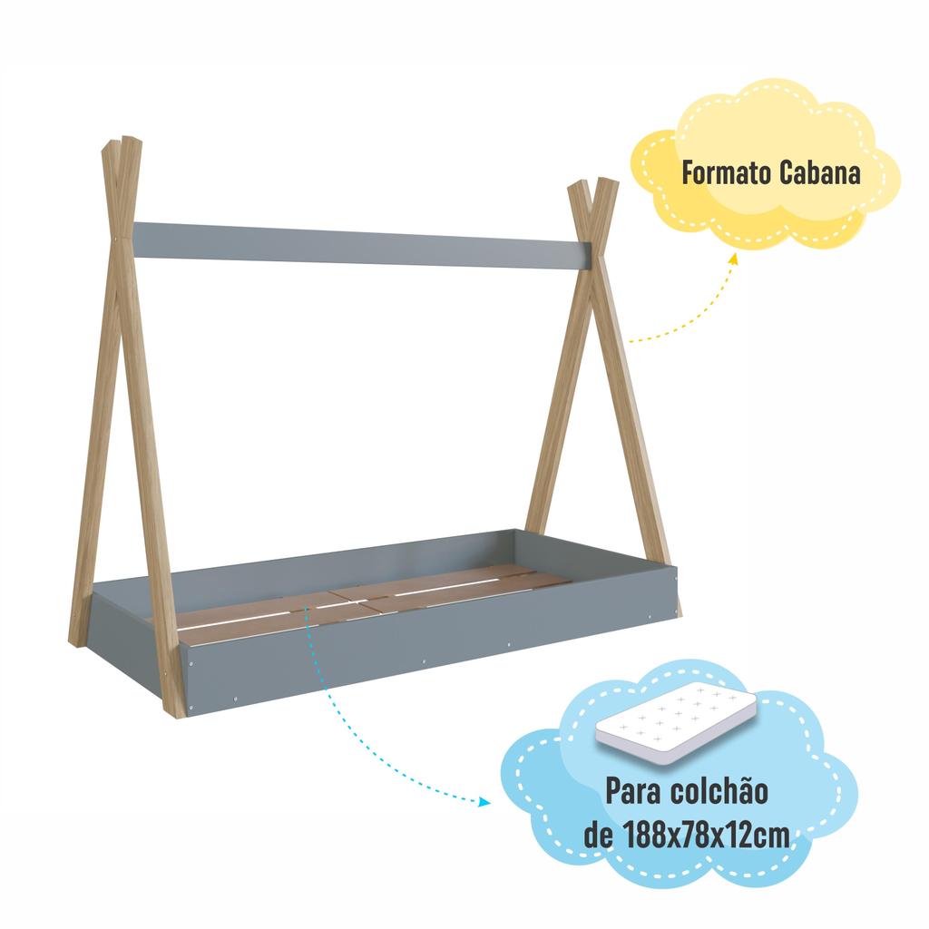 Cama Infantil Cabana Montessoriana de Solteiro para Menino Menina