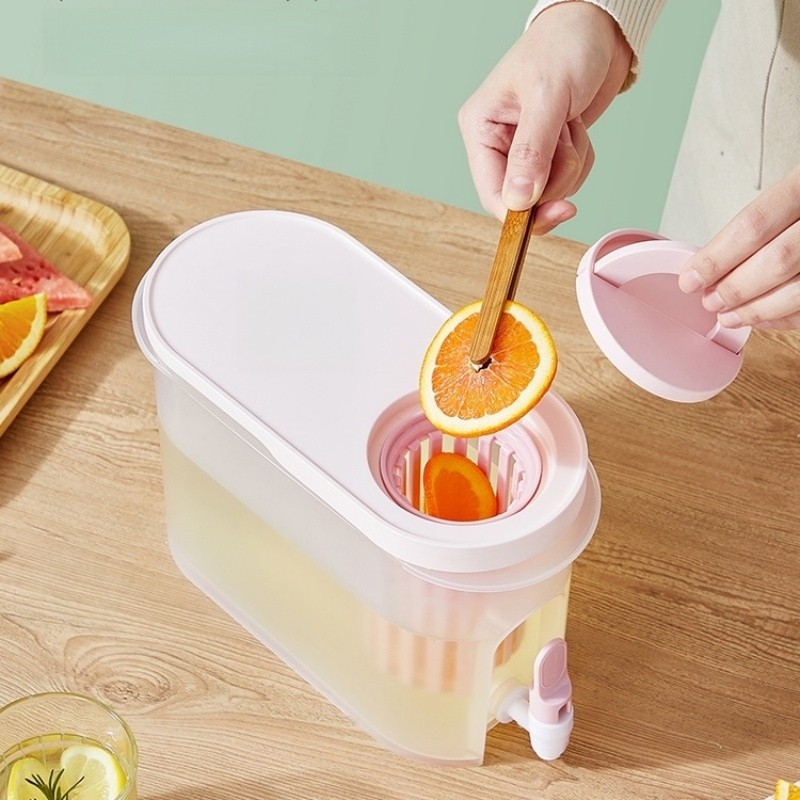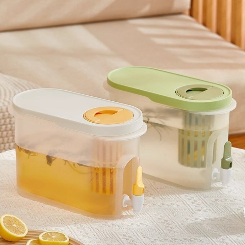 Garrafa de Refrigeração 3L com Torneira, Copos e Dispenser para Água Fria e Limonada