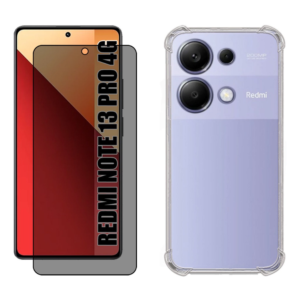 Kit Para Redmi Note 13 Pro 4G | Película de Privacidade 3D - Capa Anti Shock - Película da Câmera 3D