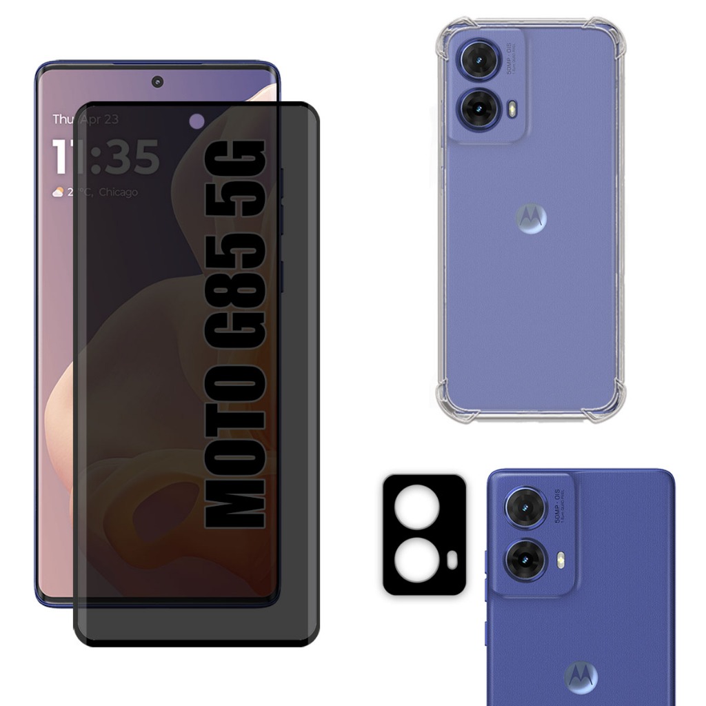 Kit Para Moto G85 5g | Película de Privacidade Fosca - Capa Anti Shock - Película da Câmera 3D