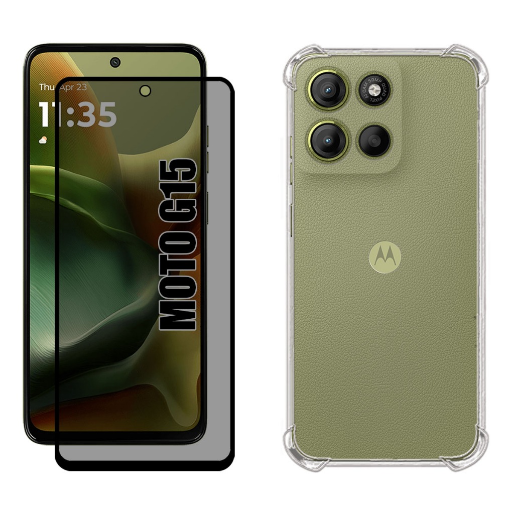 Película Para Moto G15 | Privacidade 3D - Capa Anti Shock - Película da Câmera 3D