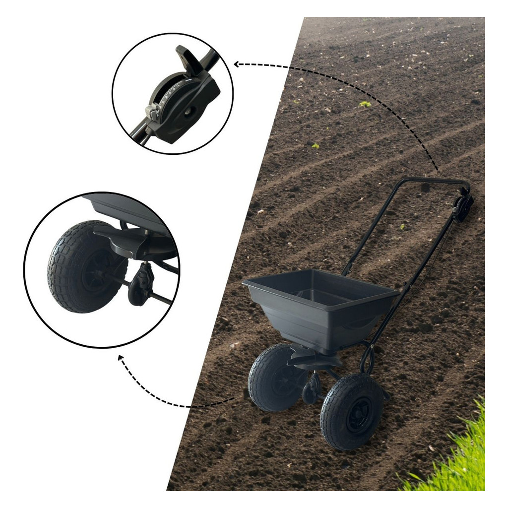 Adubadeira Espalhador Semeadeira 25kg Roda Borracha Agrícola