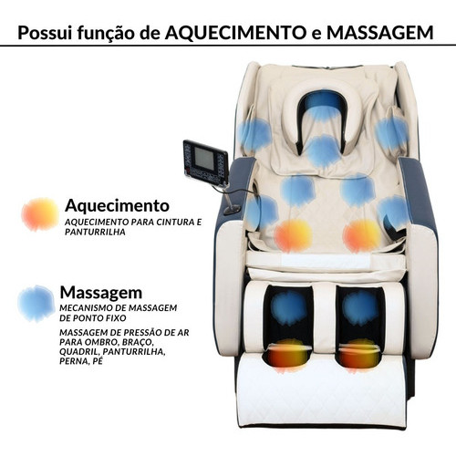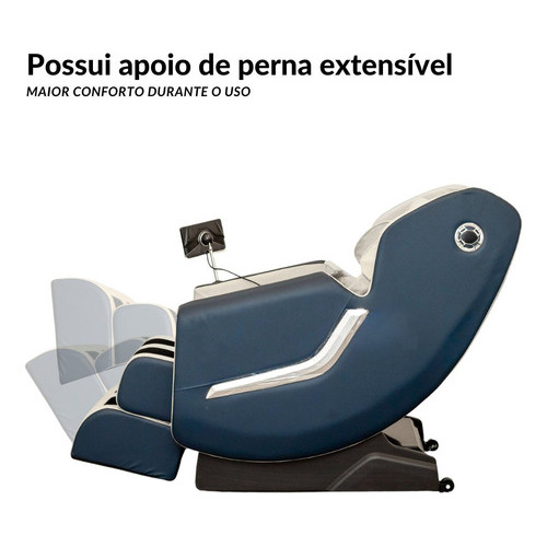 Poltrona De Massagem Azul 3D Com Aquecimento Função Gravidade Zero Reclinável Relaxante Bivolt