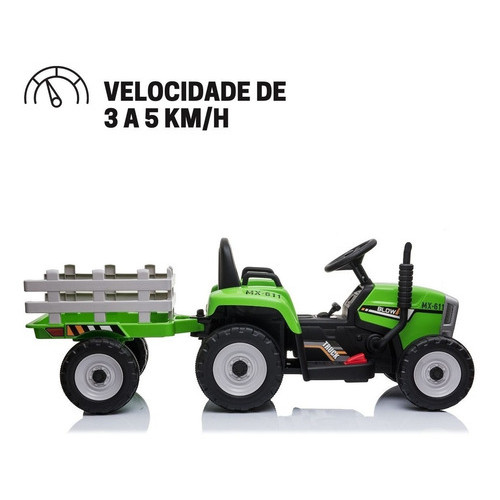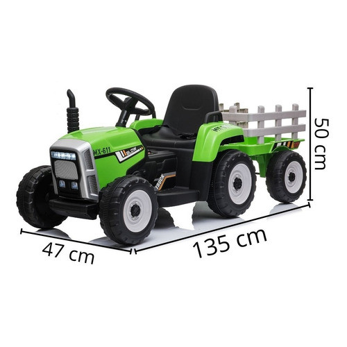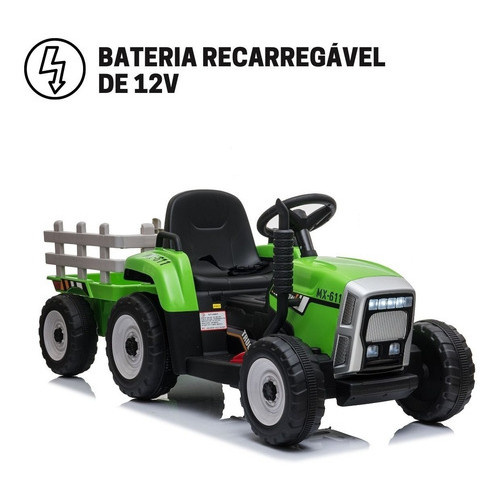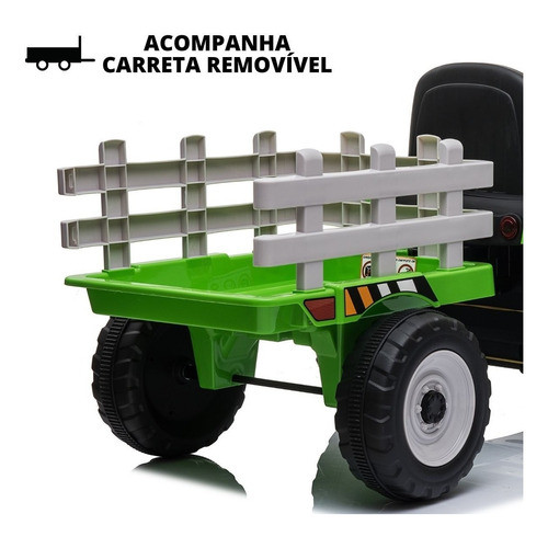 Mini Trator Elétrico Infantil Com Carreta Bateira Recarregável 12v 30kg Verde