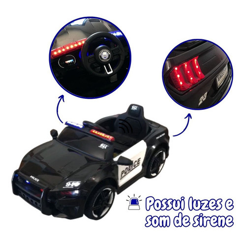 Mini Carrinho Policial Elétrico Preto Com Sirene E Mega Fone