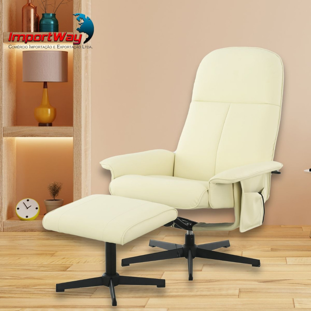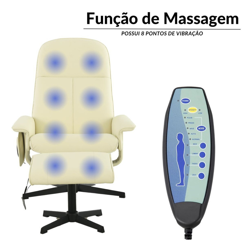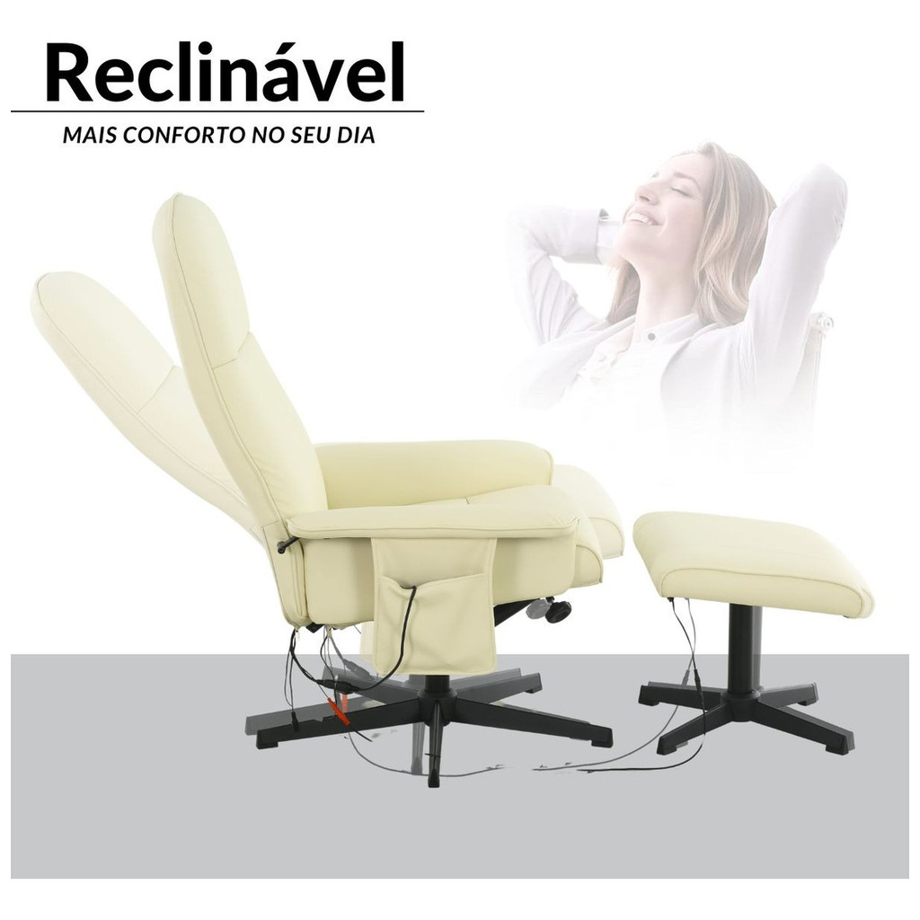 Poltrona De Massagem Reclinável Apoio Pés Bege Chicago